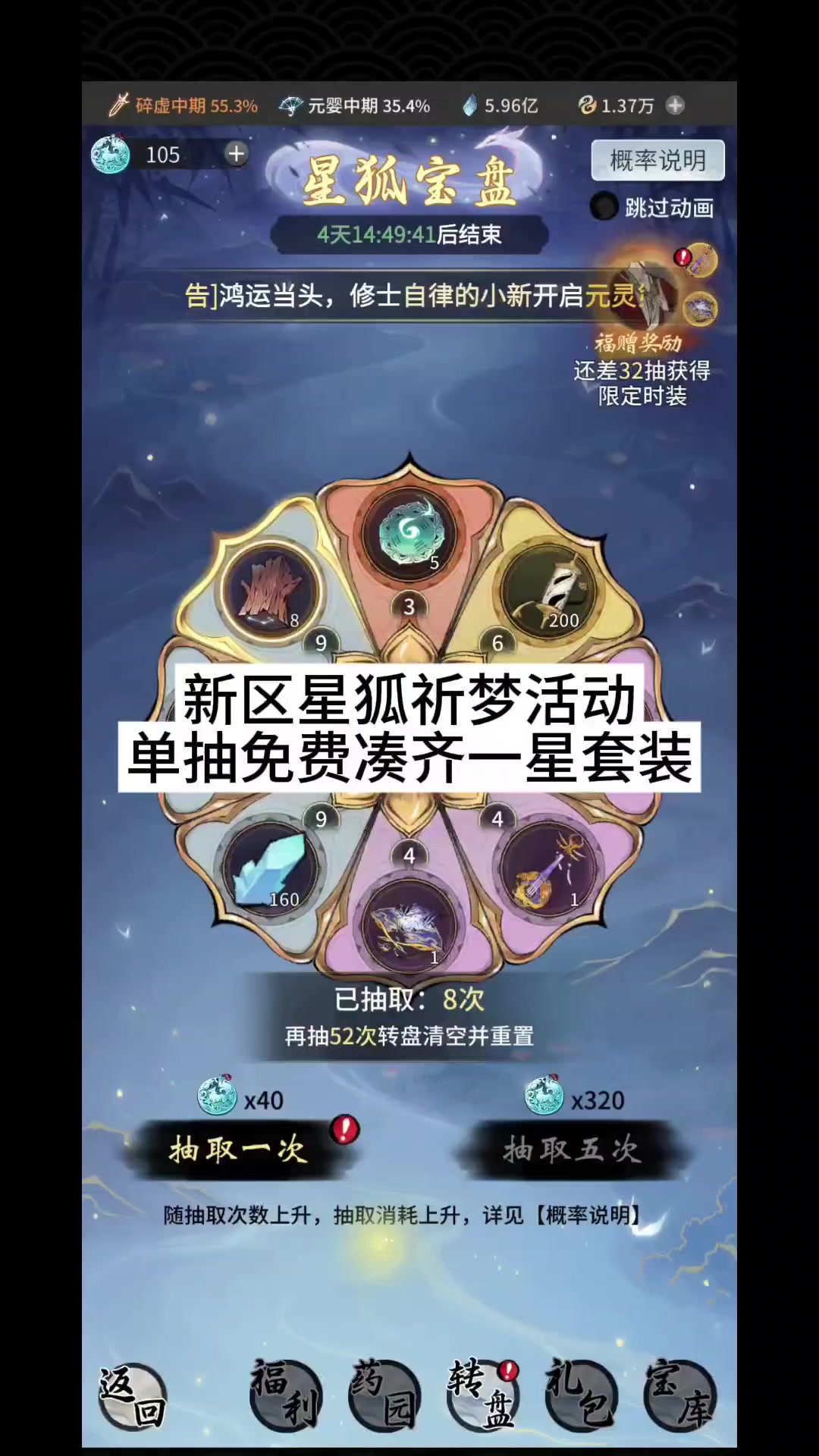 新区星狐祈梦活动单抽免费凑齐一星套装