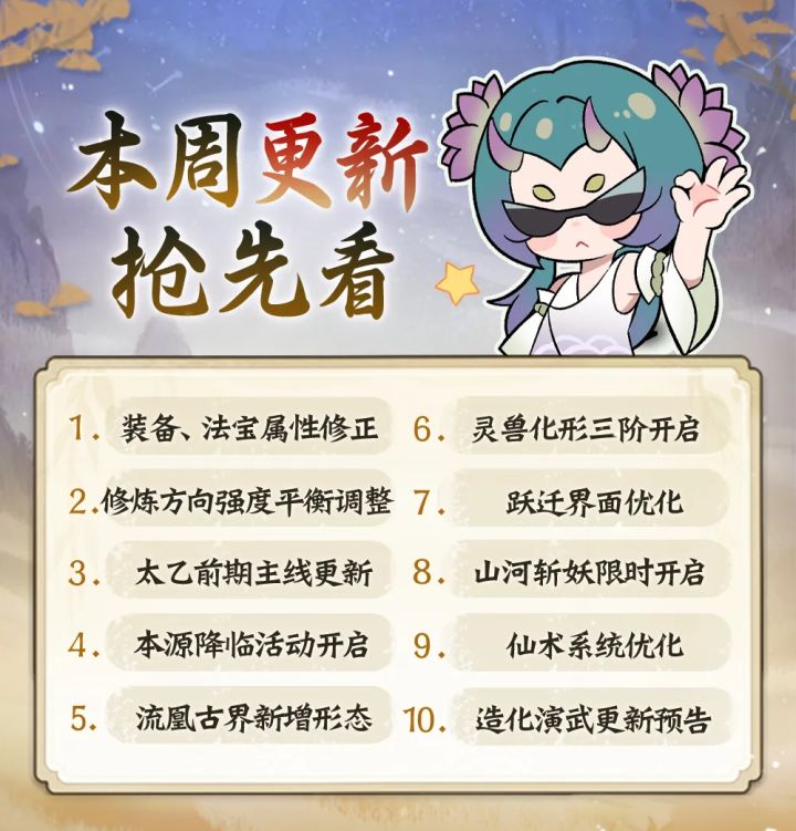灵兽化形三阶上线,太乙前期主线更新!本周更新抢先看
