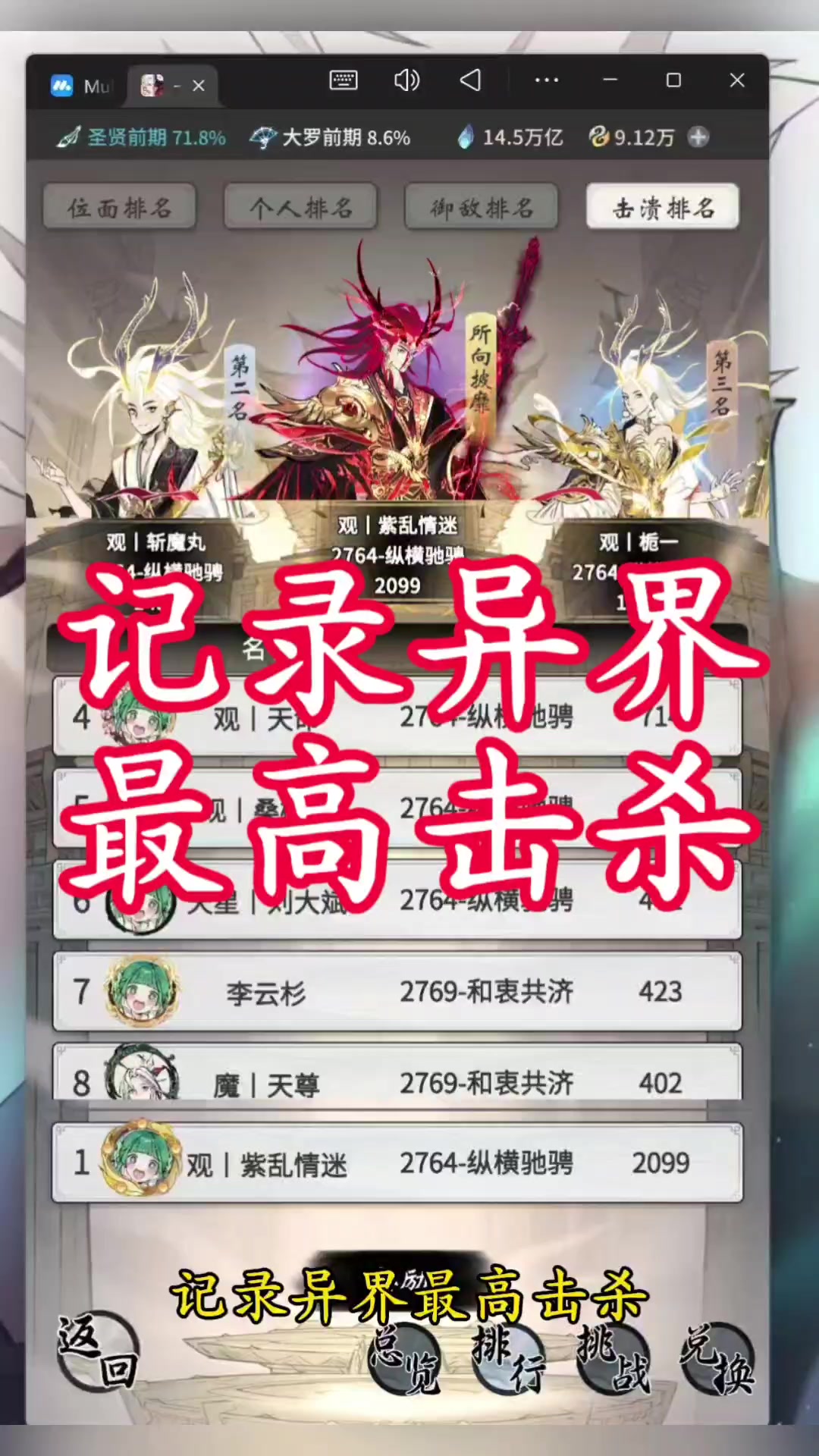 记录异界最高击杀