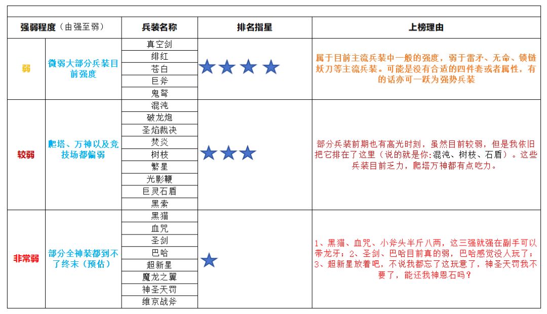 趁着老牛更新之际、趁着自己有时间、趁着大家都起床了,做了一份不朽之旅最弱(垃圾)兵装排行榜。 此榜排名由我自行编制,亦或存分歧,此讨论不做分析。 一、评分标准 针对目前兵装榜上兵装进行多维度指标、大量复杂研究后,根据:通天塔层数、使用人数、同装备下对比其他兵装进度、是否进度无长期更新、使用要求、增强后进度依然滞后于其他兵装等六个指标来对 37 个兵装进行排名分析。 为避免内容冗长无义,已将强