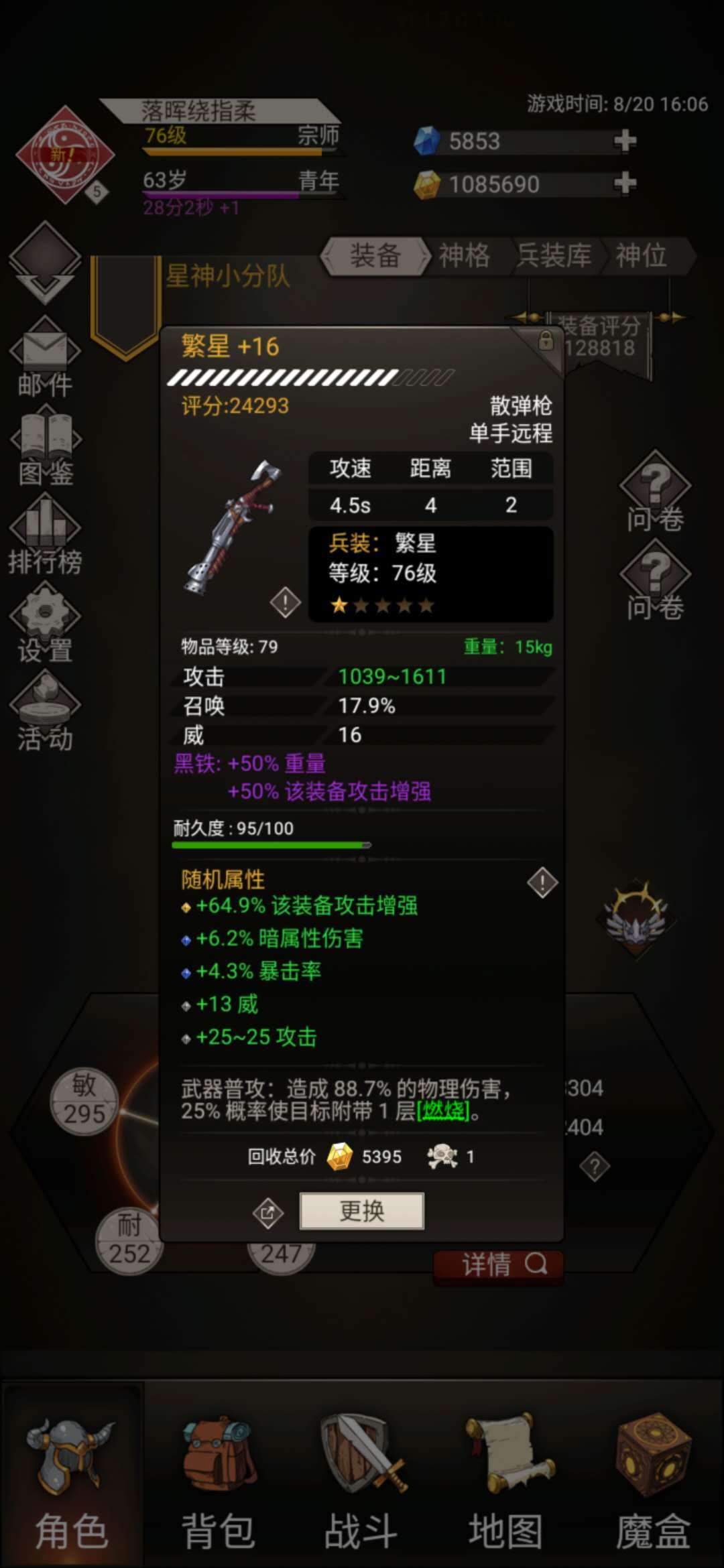 第一,前期为啥选超新星: 超新星4星时,总计提升6.76倍伤害增幅,而我只有4星sr,没得选择,离5星差半个月,5星会考虑最强兵装混沌; 第二,前期4星异端燃烧锤怎么玩 1,火蛇套,没火蛇套不能这样玩; 2,技能:ss 火鼠、火药桶(单体boss可旗子附魔边界盲区)、先驱者、水元素(s 就能用),被动魔法盾、海洋之心、时光穿梭; 3,神格和辅神格:3级神格 火焰、冰霜、时间、生命(备选灵魂,有时候