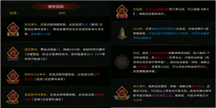 推荐阅读等级100级 万神宝库是大部分资源的主要来源,这一章就分为万神宝库和非万神宝库两个部分。预先说明,这一章带有强烈的个人风格,求同存异哈! 一、万神宝库 1. 请先仔细观看 1.资源点说明,在坍塌时间右边有个感叹号 2.掉宝预览,在掉宝值右侧的感叹号 3.当前掉落预览,可以向右滑动 2.两种开图方式的介绍 1.长龙式开图 主要用于第一个星期或者获得巨大提升后使用,老版本没有压缩等级之前是很