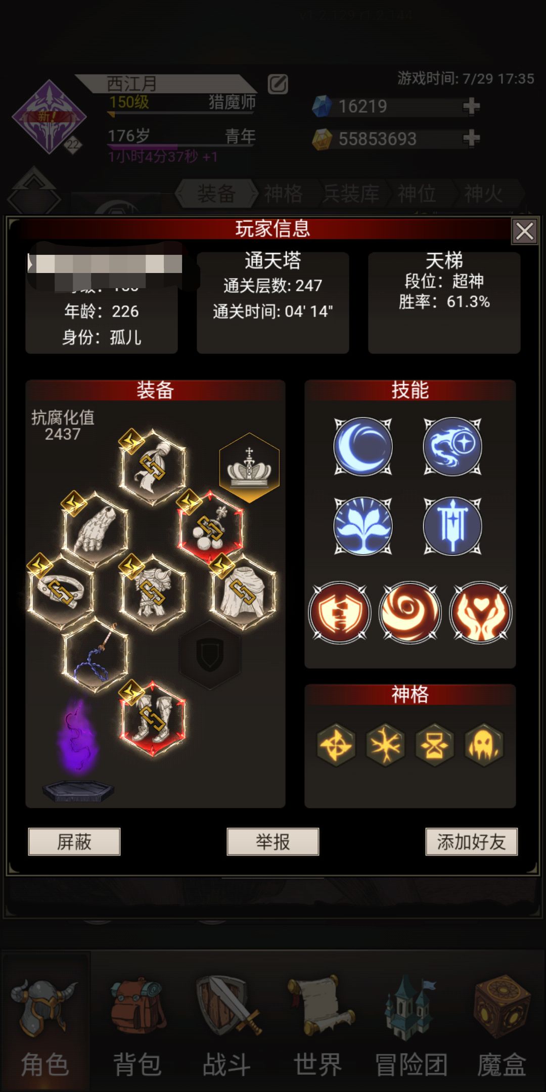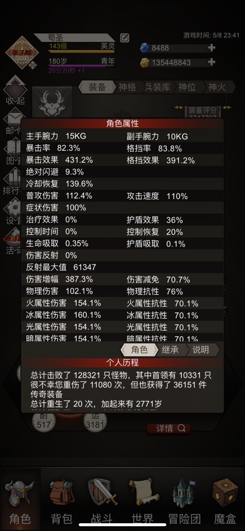 首先是黑铁词缀升华武器的获取,偏好设置成混沌,万神每天就正常刷一千多火把,三个星期没出升华黑铁,然后花了大概1500红章换到了。 然后是洗装备,扫把和混沌需要的属性差异还是很大的,扫把既不堆暴击也不堆格挡,所以洗装备也是一个很大的消耗,尤其是多了一个副手武器也得洗。 前后花了4500魂洗装备,我觉得自己运气其实算比较好的了。 宝石镶嵌花了18个沙漏扣宝石,我一般只扣20以上的。 星图一个沙漏。 腐