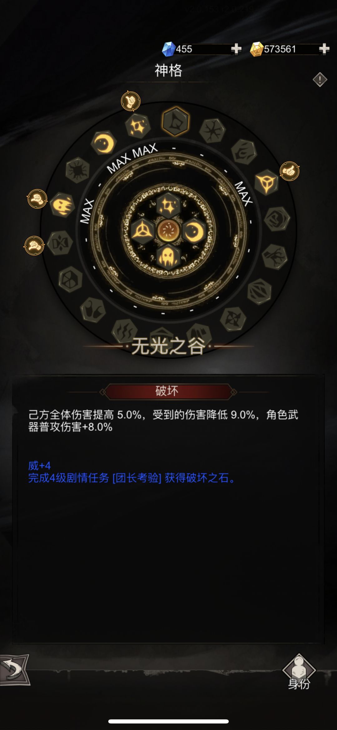 上图! 1.技能搭配 因为现在绝地的异常伤害不吃附加伤害了,所以三转下了火焰附魔换成金钟罩了。多8%护甲还能多打一点伤害。至于剑师可以看上一个攻略。 2.装备神器 四叶草主要是为了保下限,想要上限高一些的可以换成决斗。神器方面如果有红泪痕可以把红泪痕放第一位,第二位换猎龙或者时光。 3.神格神位 日耀战斗时间没什么好说的,至于灵魂,因为现在有了窥梦的开局护盾增伤和每450点开局护盾额外多9%护甲的
