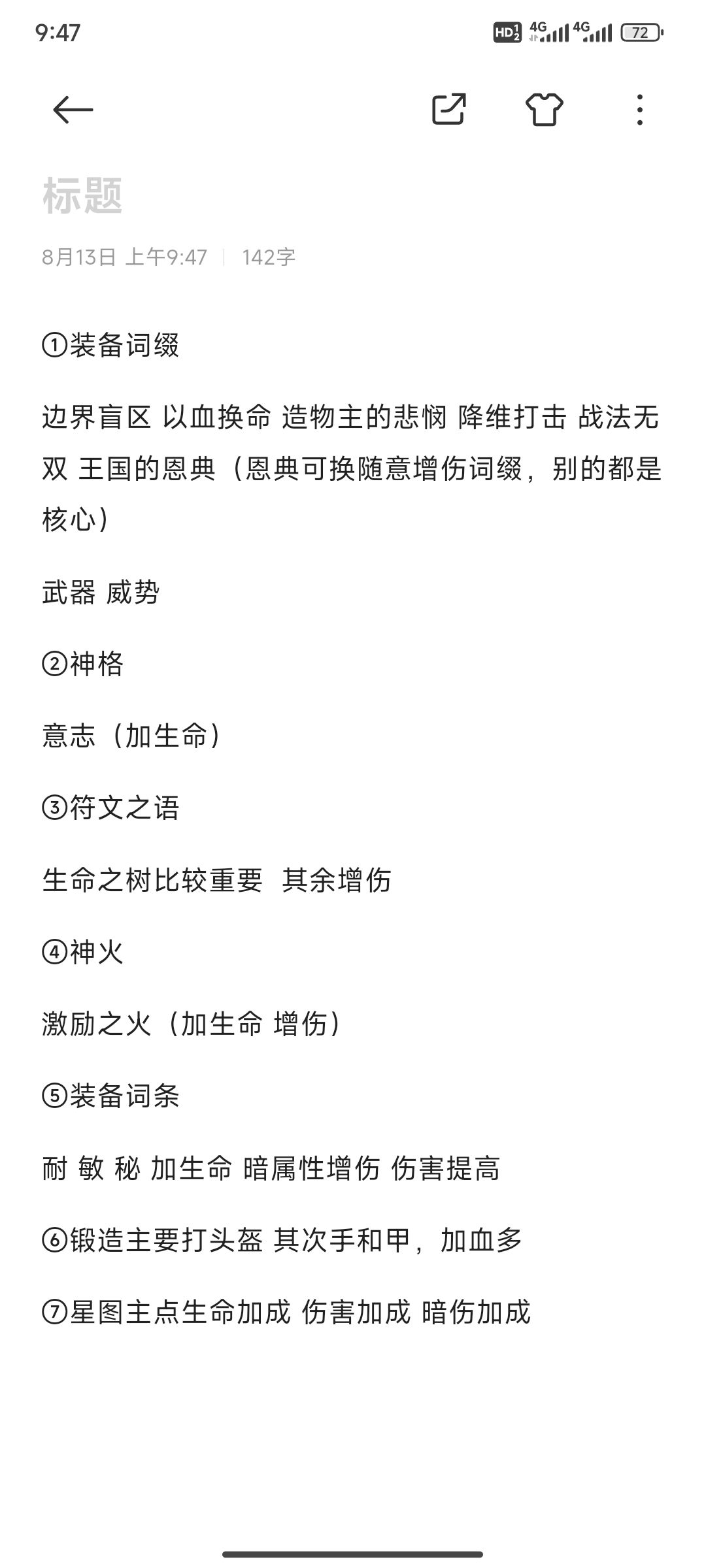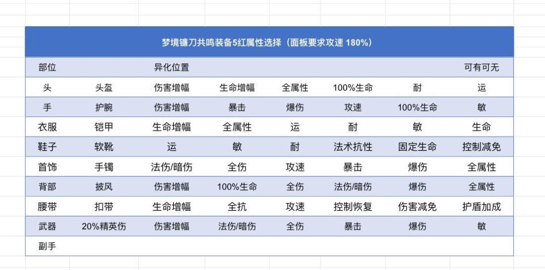 新版更新后测试了一周,还没完全测试好,先写吧,后面有补充的我就写在评论下面!!我这个套路不太适合梦主镰刀,下面会解释。 1.神格 献祭流镰刀神格测试来测试去也就老套路,时间,情绪,日耀,意志。 神威,时间,日耀,暗影,生命。 2.装备bd我直接上图吧!新版本我总结了一下,就是只要是加血的洗练,bd都用!!加血量就对了,新版本出的生命百分百增幅对献祭提升还是挺大的,其次就是增伤,免伤,暗伤!(上个版