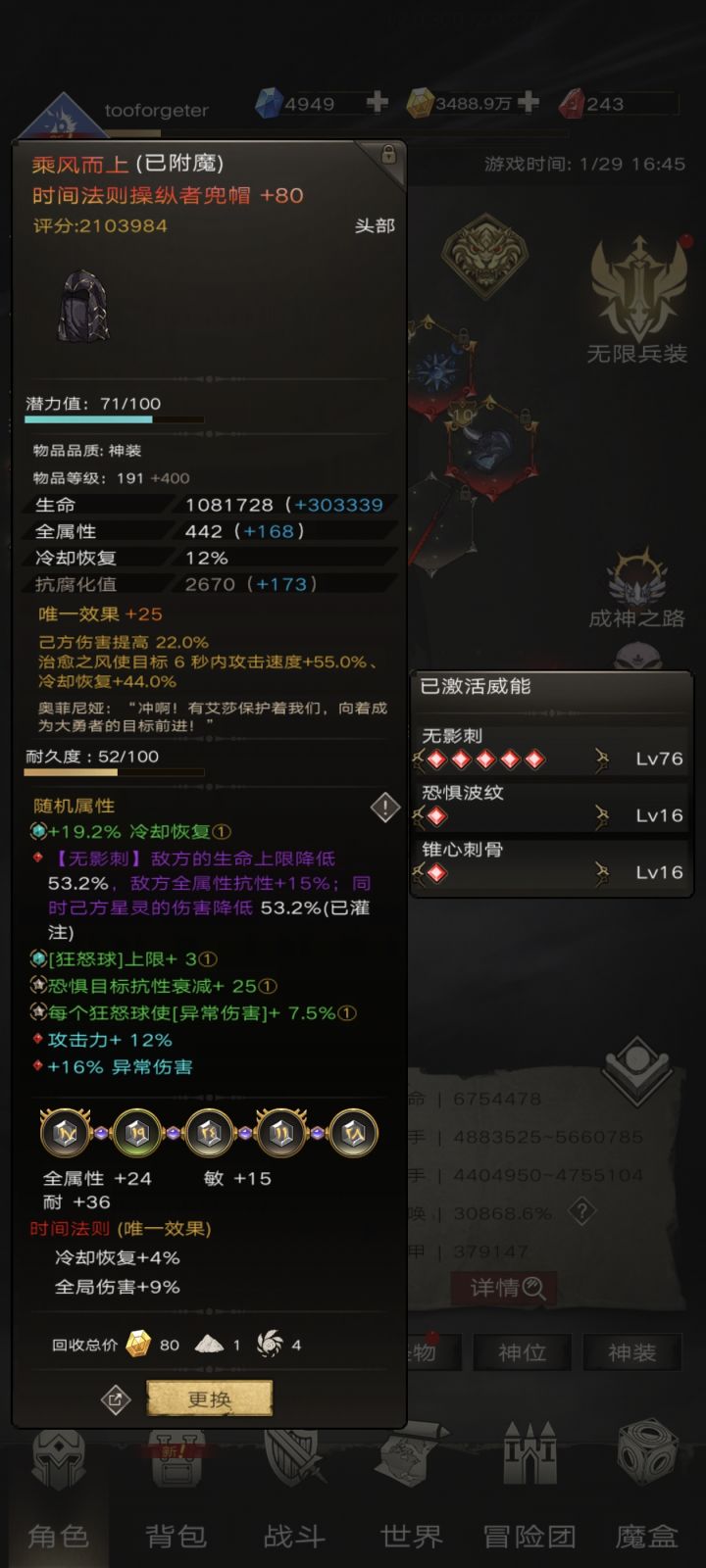 首先就是多攀了19层其次是似乎附魔都有一定的加强,我还在想单纯50%增伤不至于爬这么多层