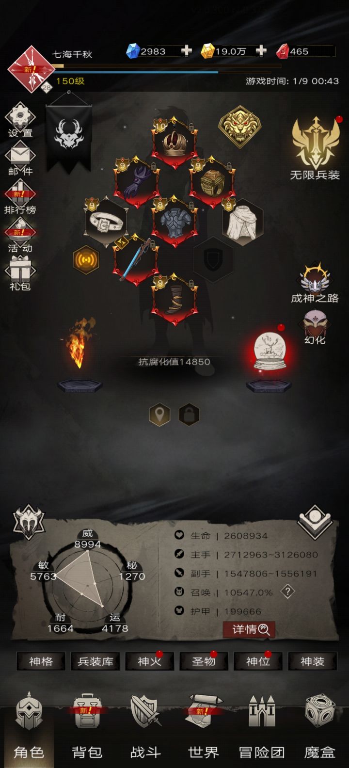 ps.爬塔和世界需要把可替换的那个词缀换成月神的祝福,能快速秒小怪,万神开图再换回提血或增伤,这波是吃月神增强的红利补充点①.武器词条打三转+8,饰品打所有主动+8,神火特性有空位打所有主动+4(空位多情况下),阴寒之息打上这些共+21%伤害通天塔自选boss已更在25楼神装后世界越23了,楼下补图