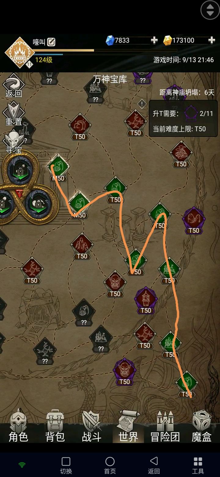 镰刀120级 t50 世界越23 一图流