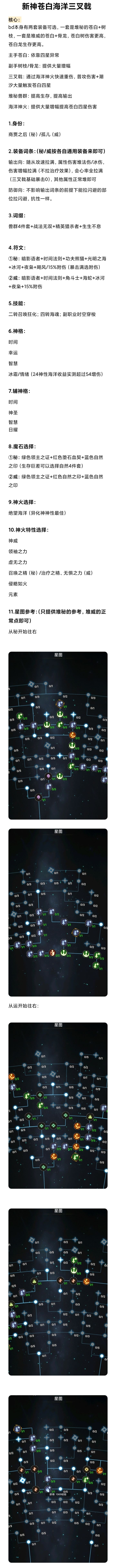 渠道3区,ID方长君.(吞楼严重,星图改到主楼,5楼神格神位词缀,22楼兵装属性和技能选择)先说明,目前新旧交替,作业可能不好抄,但思路肯定是没啥问题的.目前感觉无命比扇子混沌差了一点,但肯定还是能玩的.234W装分,探索128,塔191(一直挂着已经193),宝库171没路了.先放图,后面再一一细说重点来了,星图!(之前发在10楼,都说看不到)我之前是点的格斗家+风息+刺杀,止步18