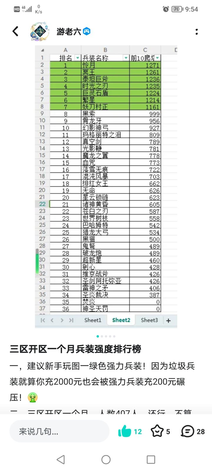 想不到一年半前的话还照样适用:一,建议新手玩图一绿色强力兵装!因为垃圾兵装就算你充2000元也会被强力兵装充200元碾压!二,四区开区一个月,人数317人,比三区开区一个月时的407人少了90人!建议以后不要开五区了!后面的新人都来四区玩吧!三,建议削弱前7名绿色强力兵装,加强后面的兵装,让不朽之旅百花