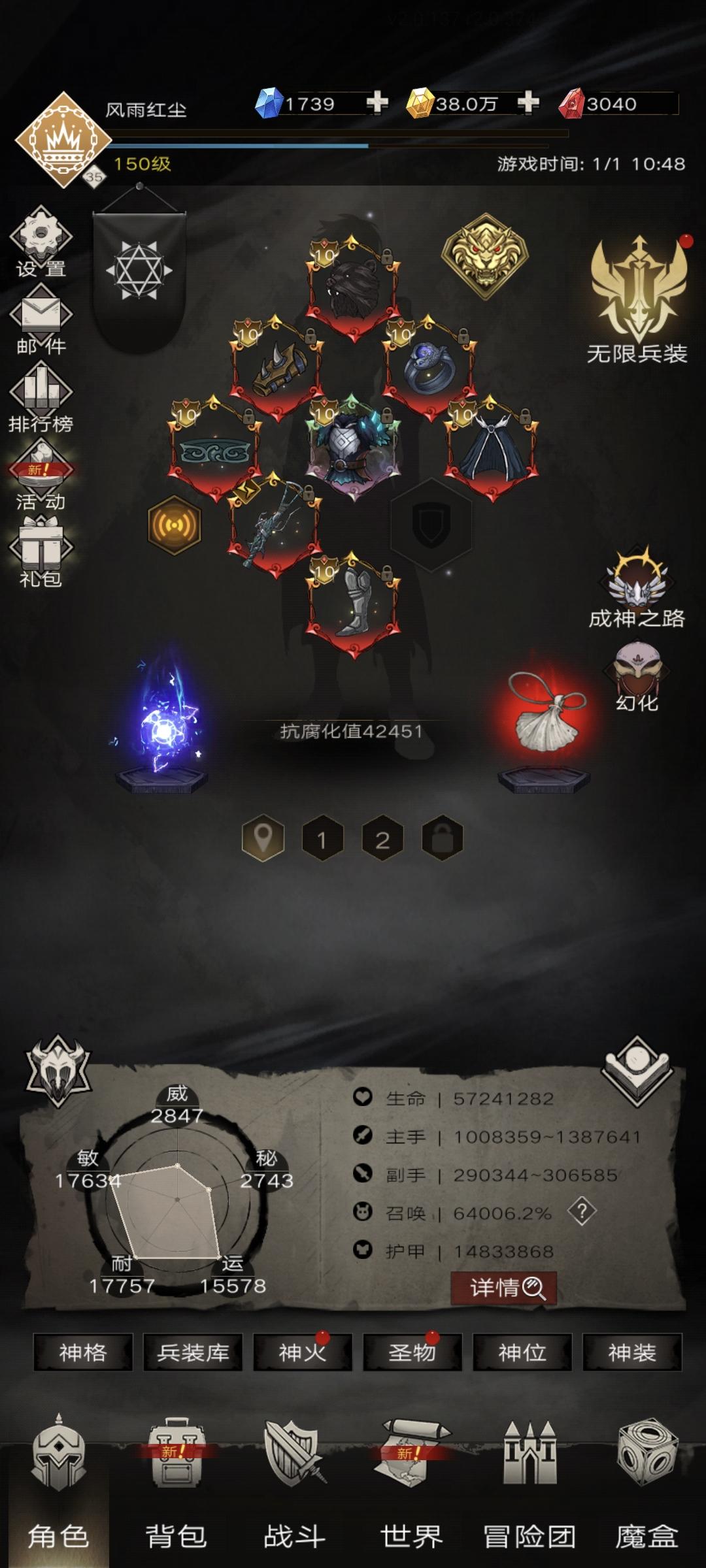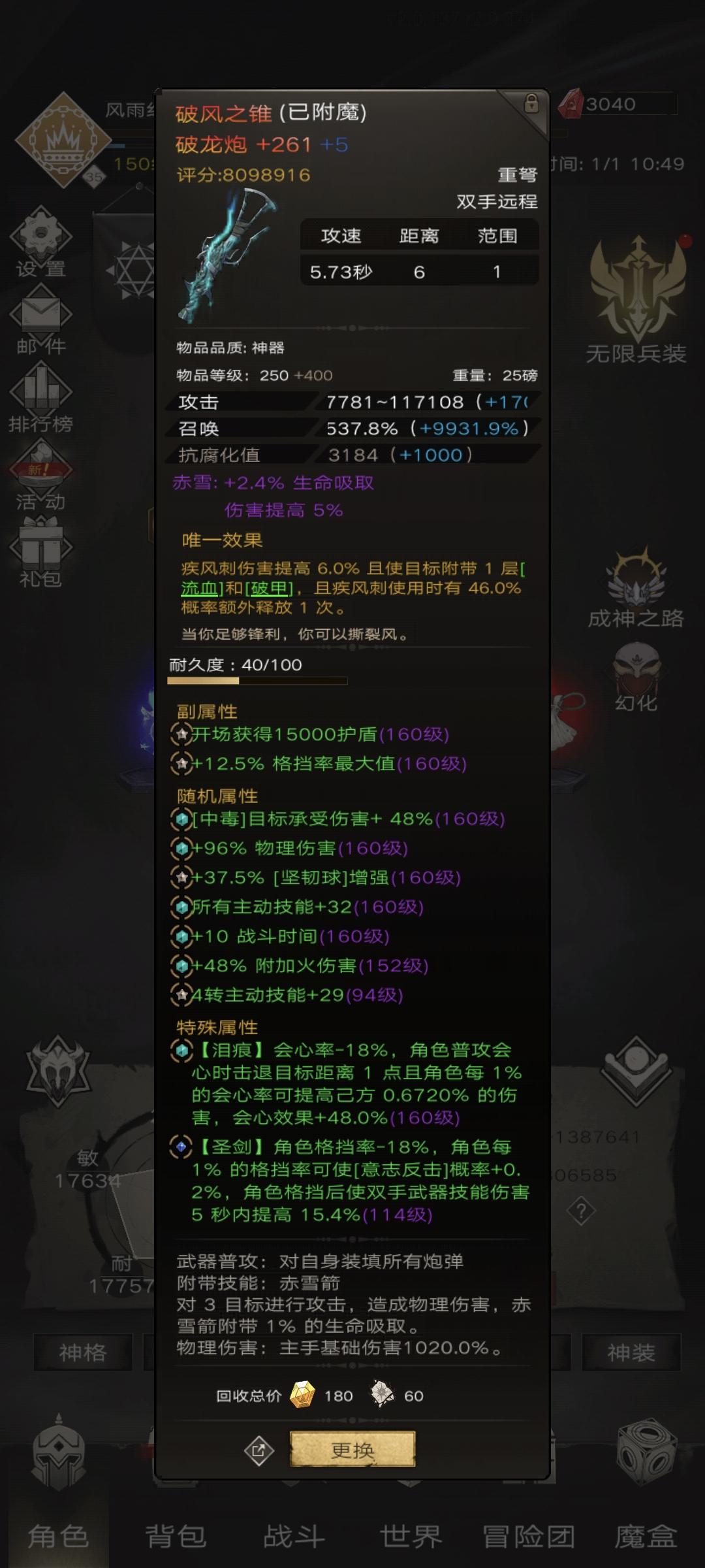 ps.爬塔和世界需要把可替换的那个词缀换成月神的祝福,能快速秒小怪,万神开图再换回提血或增伤,这波是吃月神增强的红利补充点①.武器词条打三转+8,饰品打所有主动+8,神火特性有空位打所有主动+4(空位多情况下),阴寒之息打上这些共+21%伤害通天塔自选boss已更在25楼神装后世界越23了,楼下补图