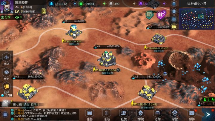 【功能修改】1.宣言功能:玩家可以在指挥官详情界面,编辑自己的宣言,进场和击杀玩家,都会公告宣言2.解除盟约功能:玩家可以通过两种方式解除盟约使用500暗物质解除盟约盟友离线8小时以上后,可以通过按钮免费解除盟约(备注:电磁风暴时间并不算在内)3.阵容编辑界面,增加军官状态图标蓝色为驻防,绿色为行军,红色为战斗【优化体验】1.优化出征军官选择:在选择军官选择界面增加"已驻守"筛选