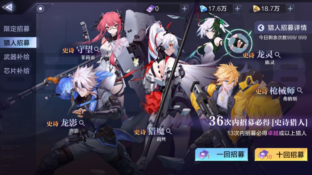 在《时空猎人3》中,猎人作为我们参与活动,刷图推本,参与天梯的主力选手,一直是大家需要重点关注的内容。而想要获得猎人,最直接的方法就是参与“猎人招募”。“猎人招募”每隔一段时间会更换一次卡池,在不同的卡池中,大家所能获取到的最高品质的猎人也各不相同,例如在当前卡池内,我们所能抽到的最高品质猎人为【守望·菲利亚】、【龙影·唐影】、【猎魔·莉丝】、【枪械师·弗格斯】以及【龙灵· 陈灵】这五位。 那么,