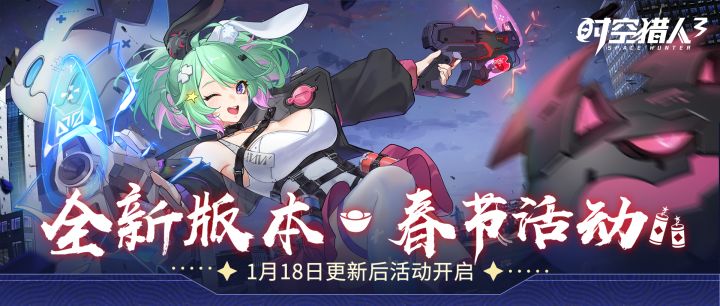 1月18日雷兔登场!新春系列活动即将开启~〓 精彩活动 〓▷ 各色福利,欢庆新春!跨年领福利邮件1000钻,参与迎春礼册领「圣女皮肤·幻蓝轻罗」,新春摇钱树得自选史诗猎人、自选橙色芯片……更有登录祈福、红包雨、放鞭炮、集福贴等春节活动与福利等指挥官探索~▷ 全新超能猎人「雷兔」登场!「雷兔」拥有大量的脱手远程技能,巧妙地使用技能,可以进行极强的战场火力覆盖和火力压制。完成进阶之路活动,还