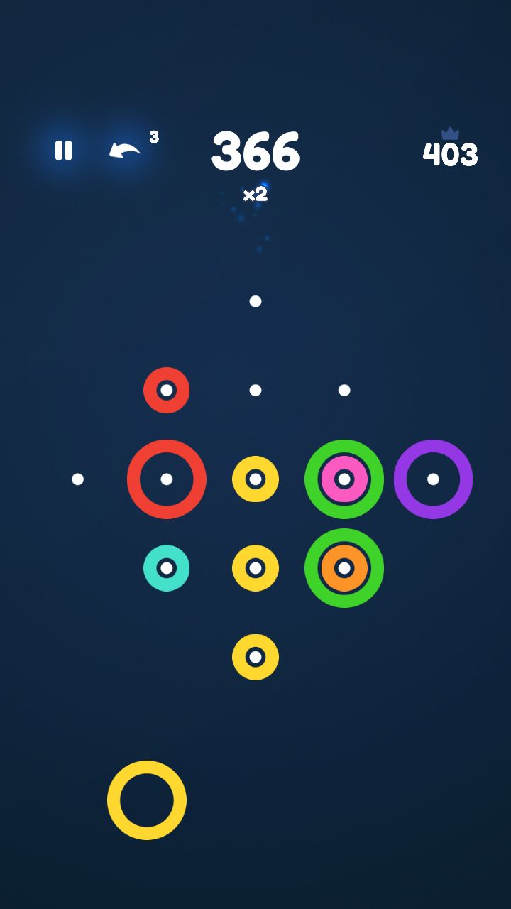 昨天之前,我还天真的以为,类似2048、合十这类型的益智游戏,不会在我的手机里存在太久,但没想到浓眉大眼的我,今天却已经无法割舍《Rings.》了,究竟是怎样的益智游戏,才会让人如此沉迷呢?游戏的玩法主要是通过颜色的相同消除来展开,3个一排、一竖、或者斜着都可以消除,位置由我们自己摆放在九宫格内,系统会每次给我们三个元素,由于开始颜色不会多种出现,初期的难度还是比较容易的。而游戏最有特色的地方