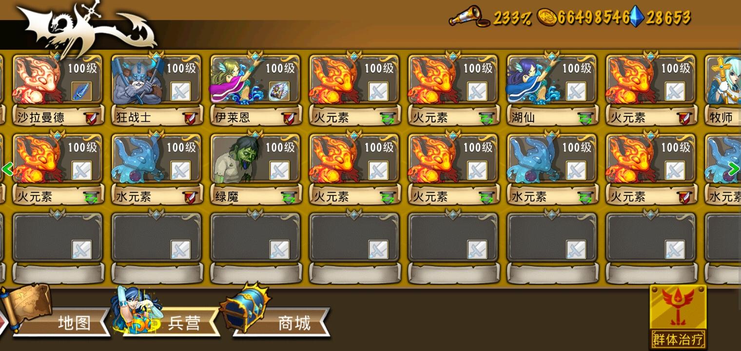 只是按照经历汇总一下 1.填邀请码。开局团长无所谓,建议选奶团,因为只要治疗就有经验,升级快,到30-40级就用钻石升级到90+ 2.前期走电法风灵,虽然被砍了,但是还是很好用,电法速攻暴,财富风灵好打钱 3.刷金币,买几个18000兵,买的兵和团长等级一样,所以团长越高级越好,直接数值碾压,武士和绿魔很好用,一个换位不掉行动力,一个对位BOSS直接秒伤害爆炸 4.风灵电法+18000兵可