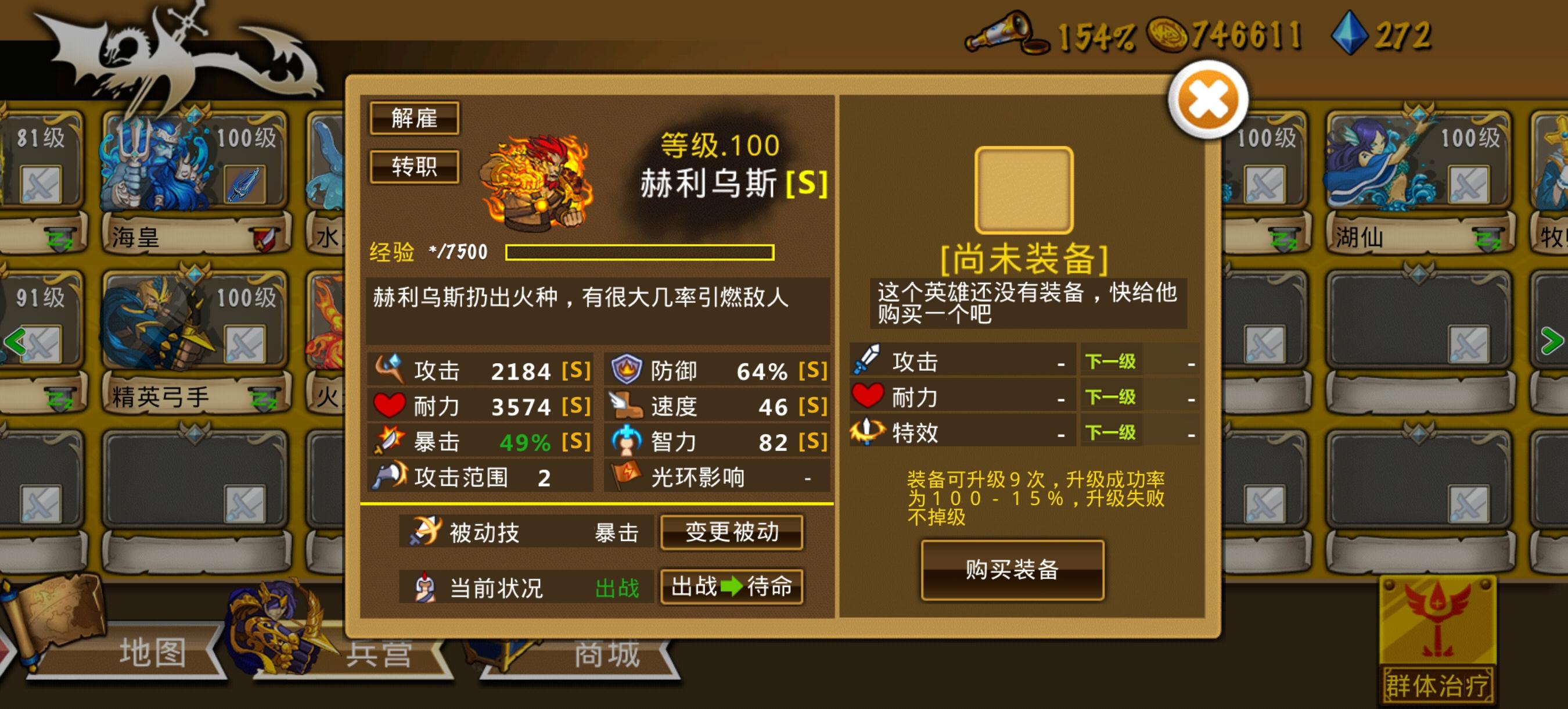 新版的难度对新手不太友好,建议新手先选弓团招上图的阵型,最后排可以全是武士,因为武士可以随意移动,可以根据怪物类型来改变位置,第三排精英弓要有远攻,第一二排主选幸运和迅捷,然后就是漫漫的推图路。 2.打BOSS的时候可以把小兵都招过来。 3.可以充个30块每天领50钻。 4.钻石优先升弓团二转。 5.邀请码E2464