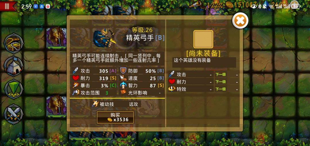 前期金币少不用特意买极品精英弓,但是速度必须S及以上,然后前排后排各买一列武士,武士前期可以自由移动(拖动后不失去行动能力),再带个奶妈(牧师就行),之后上场人数有上限,最多限制24人,建议上场23人,留一个空位可以在打不过的时候招募敌方单位然后解雇,按照这个逻辑基本上前三个图都没有什么难度,实在打不过就花十宝石过。(我也刚玩不久,只是说说心得,希望大佬们不喜勿喷[表情_祈祷][表情_祈祷][表情_祈祷]