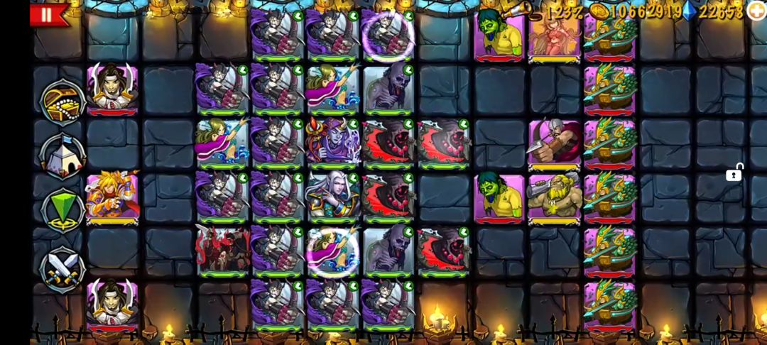这些英雄很强力,这个阵容也很不错--来自玩家EE1171 阵容介绍: 第一排,目前阶段我是主要放两个蓝鬼在前排,后排没有,然后随便四个死亡骑士或者别的近战/护盾。 第二排,两个湖仙各占一边,能给前面三排都提升速度;然后放攻击距离只有2的远程输出,我这里放四个财富技能的。 第三排,可以放远攻,远攻的才能打前排,也能应对出现在后方的怪,攻守兼备;当然,当蓝鬼有雷霆戒指之后,也能适当放些风精灵来拉助攻。