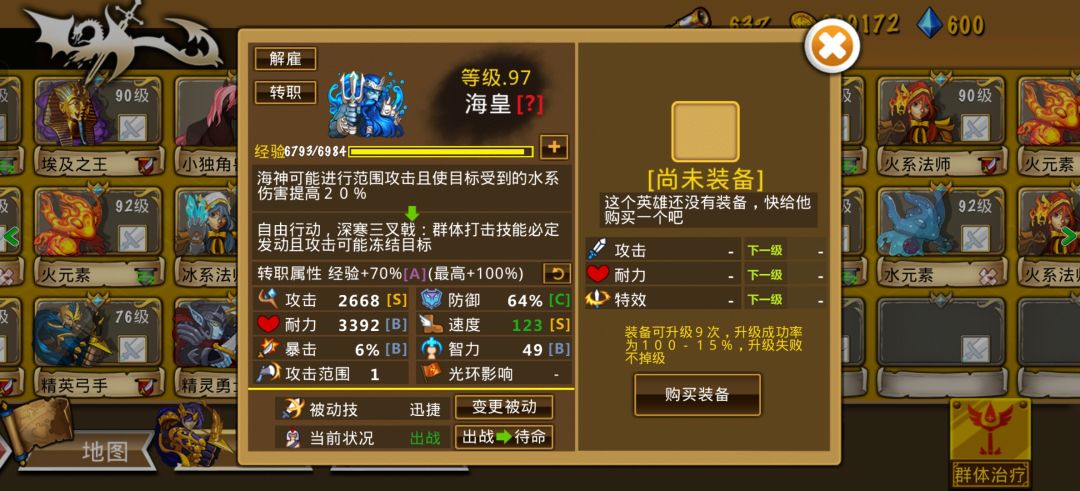这些英雄很强力,这个阵容也很不错--来自玩家E63894 新来的两个英雄,一个买的,一个送的,第二个要不要二转嘞,感觉钻石不够用了,现在存钻石下一步该花在哪里,都要钻石,缺缺缺钱💰 - 避免资源浪费:前期勿用钻石升级过渡兵种(如电法、风灵),专注培养海神和团长。 - 灵活调整阵容:根据敌方兵种特性(如高闪避的精灵游侠),可临时替换部分单位(如加入黑法削弱回血)。 - 利用游戏机制:在4-75关尝试