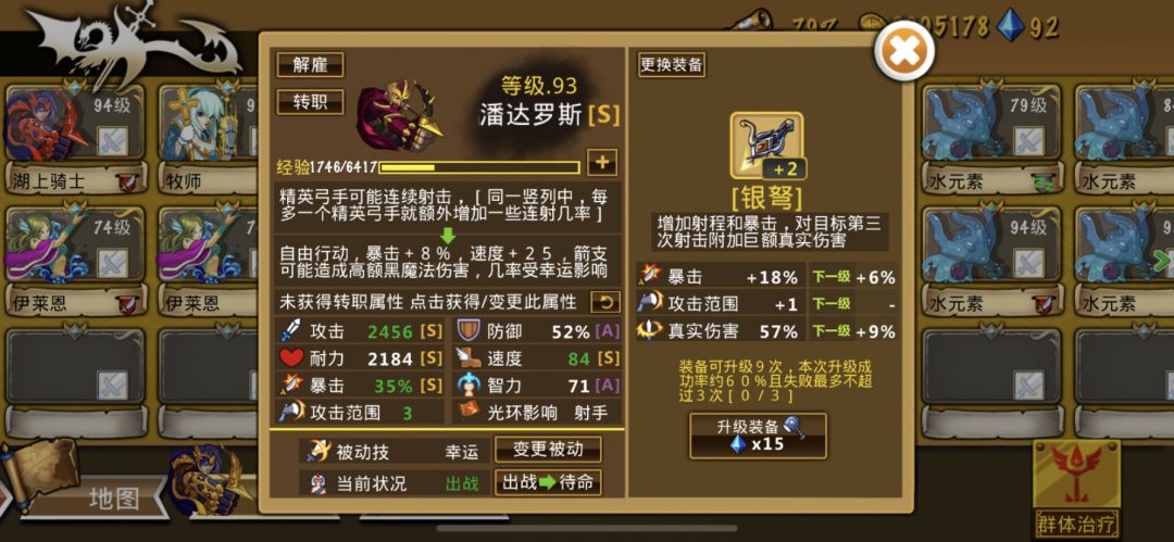 心得和避坑指南 1.前期只要等级比怪高,玩啥都碾压。所以花砖石给团长升满级,再买18000金币的怪就可。 2.核心是火神的单体爆发以及海神或者阿卡的群体清兵。冰龙可以减速对面,让我方远程能先出手,湖仙可以加速己方。培养的优先级海神=阿卡>火神、火灵>其他 海神和阿卡刷钻过图一刀清屏,洗出财富后,只要肯肝一小时大约两百钻(看个人掉率),而半藏基本吃灰。其他体系因为单体输出不如火神,没钱养的话过图都费