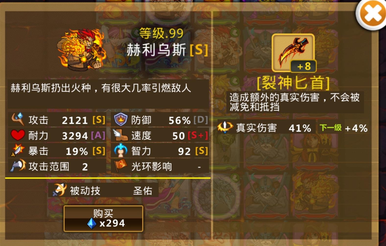 这些英雄很强力,这个阵容也很不错--来自玩家E63894 抓了一只海神 4-52关卡:法伤薄血速刷首选 - 关卡特性: 敌人以暗鬼、黑骑士为主,均为法伤弱防单位,BOSS血量仅为普通关卡的70%;三波密集群怪(每波12-15只),无后排刷怪机制,战斗节奏快。 - 阵容推荐: - 低配方案:2只二转海神(A+属性,财富被动)+ 8只财富水灵(无需转职)+ 2只湖仙(二转加速)。海神装备蓝刀