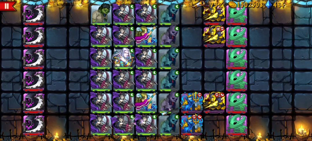 作者奶团,看截图依次是boss 76-81,供后来者提前调整阵容。 76:小怪无压力,bos见图右边2重盾扛住,2北风冻结后方弓箭,火神清理小天使,雅典娜搏对面bos这一行复活,左边海神冻结先清理掉。然后损失不大转战右边,剩下的冰龙重盾扛住,北风海神冻结尽量多的小怪,绿鬼找好间隔启动,2回合收掉剩下5bos,一般3回合就过不去了。 77:作者第一次卡了一整天没过的关卡,第二天才过。5凤凰2海神2重