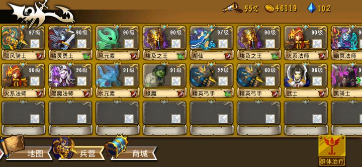 最近玩的很上头,分享下阵容--来自玩家 EF5072 阵容:梅林,火神2,冰龙4,大法师4,火灵3,湖仙2,独角兽2,凤凰3,北风之神2目前在3图努力,想要抓一队A攻击,S暴击的火灵,再二转买神刃,团长也要出专属戒指,进一步提升输出能力。