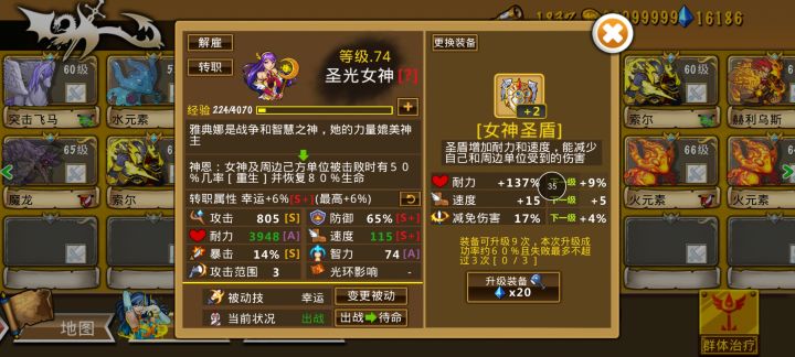 --来自玩家E84955总共耗时8天,抽了3轮,花费2w钻,二转+装备用了1.5w。可用神级各一个,s级两个,阵容完成三分之一。 上上周天靠着弓团白天黑夜不停的打工,攒的2w钻开抽。结果没出货。归档等0点,在抽到1w的时候,雅典娜出货了。前面是一北风,一阿卡,关键属性都a,不过也能凑合用。然后一堆s级,就一个火神还凑合。果断保存。 第二轮,到上周五晚又进行一次,这次第一神级出了不错的北风,速