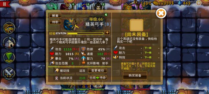 这些英雄很强力,这个阵容也很不错--来自玩家EE4972今天靠邀请队友把弓团二转的钻石攒够了。感觉弓团的湖上骑士需要配合一列弓箭手,但是我的精英弓手是很久之前抓的,数值有点低了,伤害很不够。打算再抓几个,或者靠18000金币看能不能买到精英弓手。