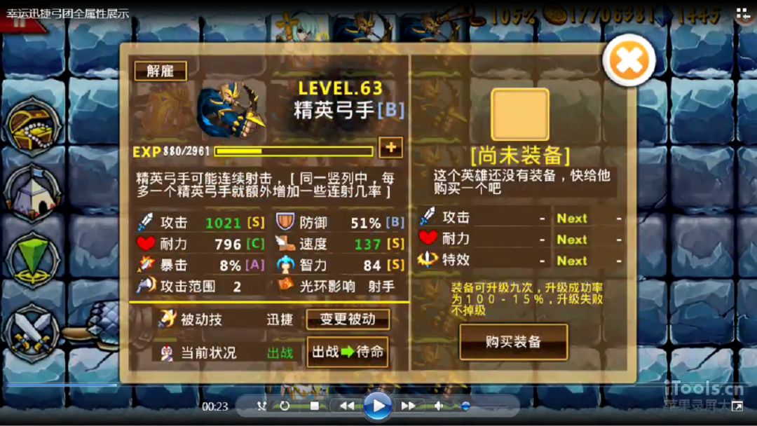 单机游戏策略军团视频攻略-毕业幸运迅捷弓团全属性展示