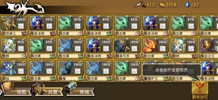 这些英雄很强力,这个阵容也很不错--来自玩家E05470。鬼团长,6武士,5鬼弓,2暗鬼,2盾,1精英弓,1个海神。一口气推了十几关。海神还是厉害,范围攻击无敌了,就是没有钻石给他上蓝刀。继续攒蓝刀碎片!