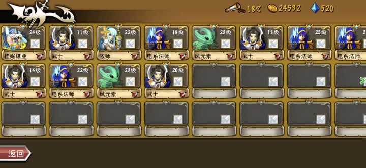 这些英雄很强力,这个阵容也很不错-来自玩家ED5211阵容:奶团,6-7个武士,8个风灵,6个电法。昨天刚开始玩,已经打过图1,目前在图二努力练团长等级,不过感觉练级好难。