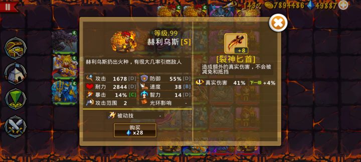 这些英雄很强力,这个阵容也很不错--来自玩家E53036今天抓到一个28钻石的野生火神,解雇后寻宝率从143%涨到了144%,又向前进了一步,还是挺不错的。目前钻石四万九千八百,明天就能回到五万了,这种情况下,根本花不完好吧。