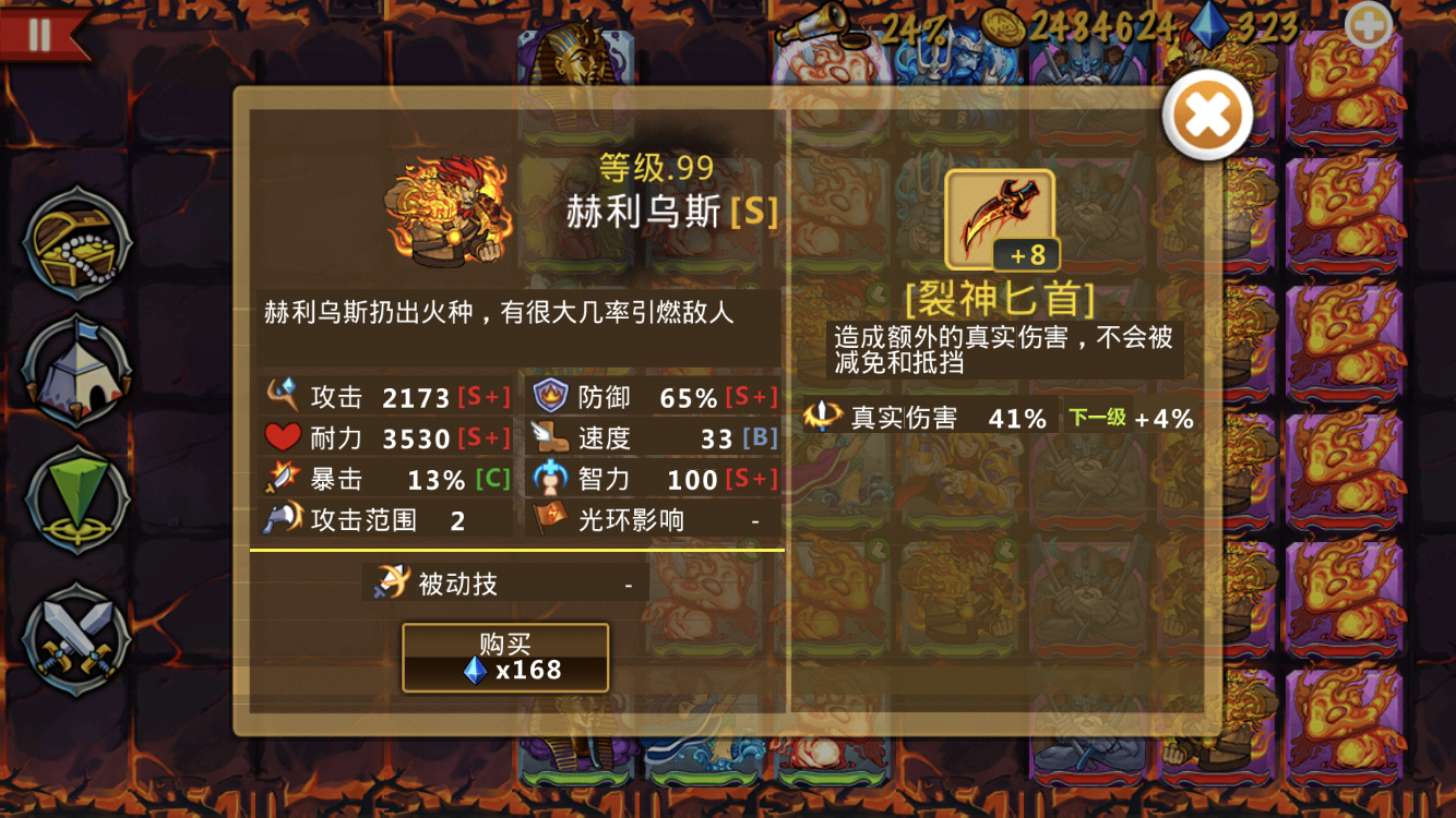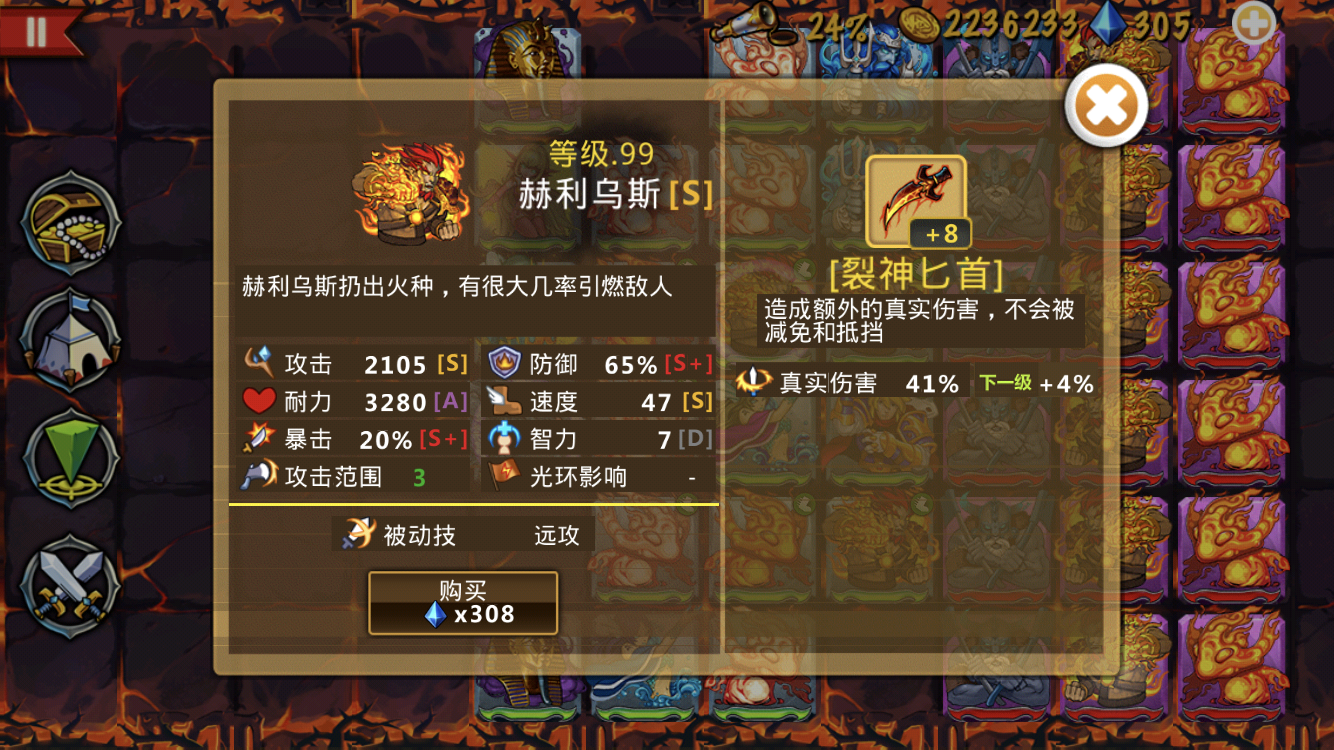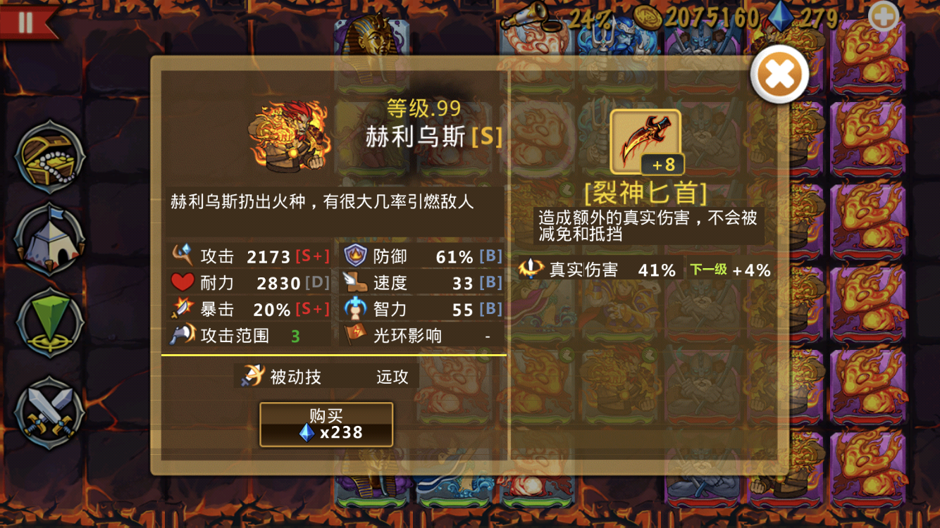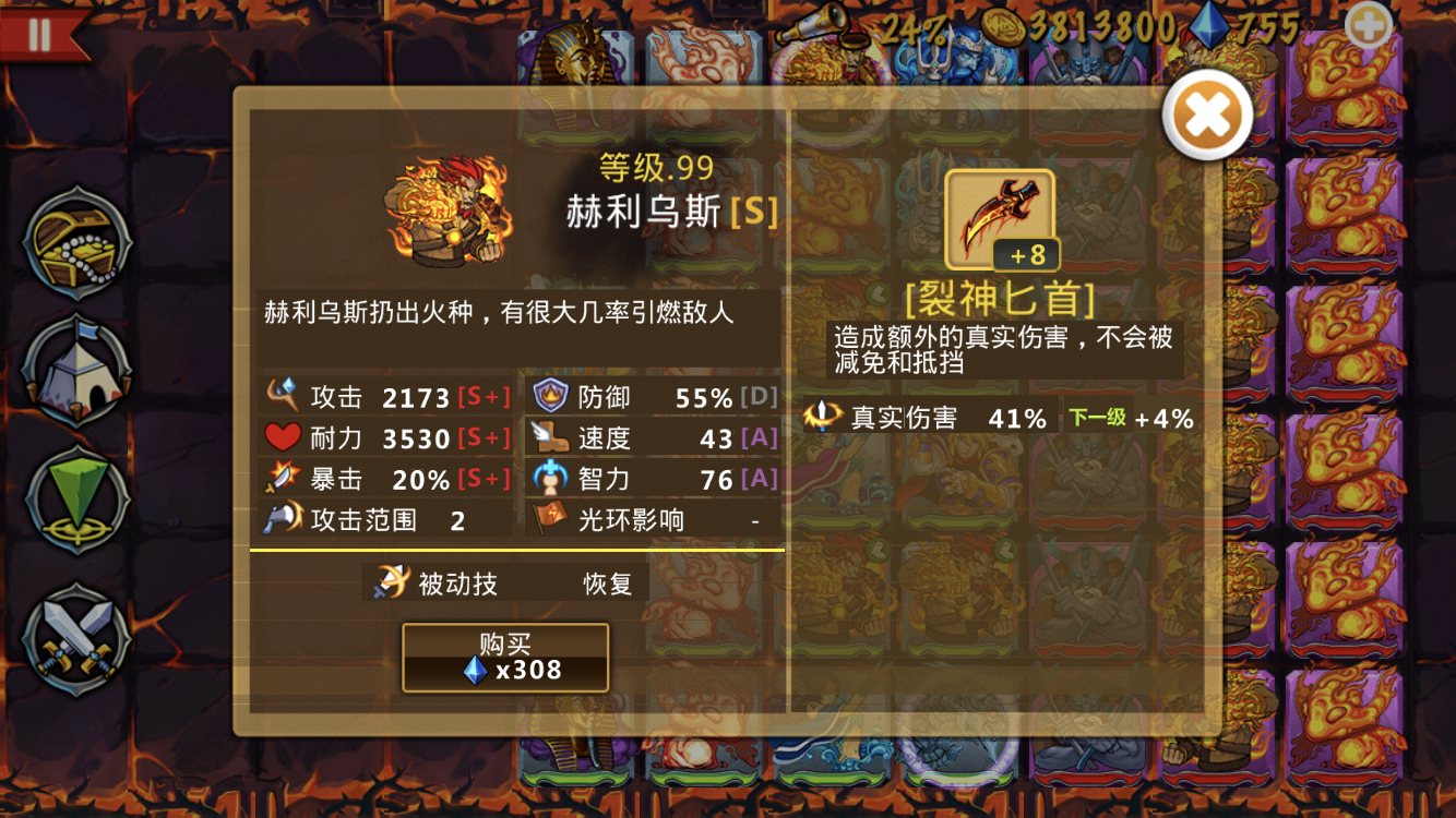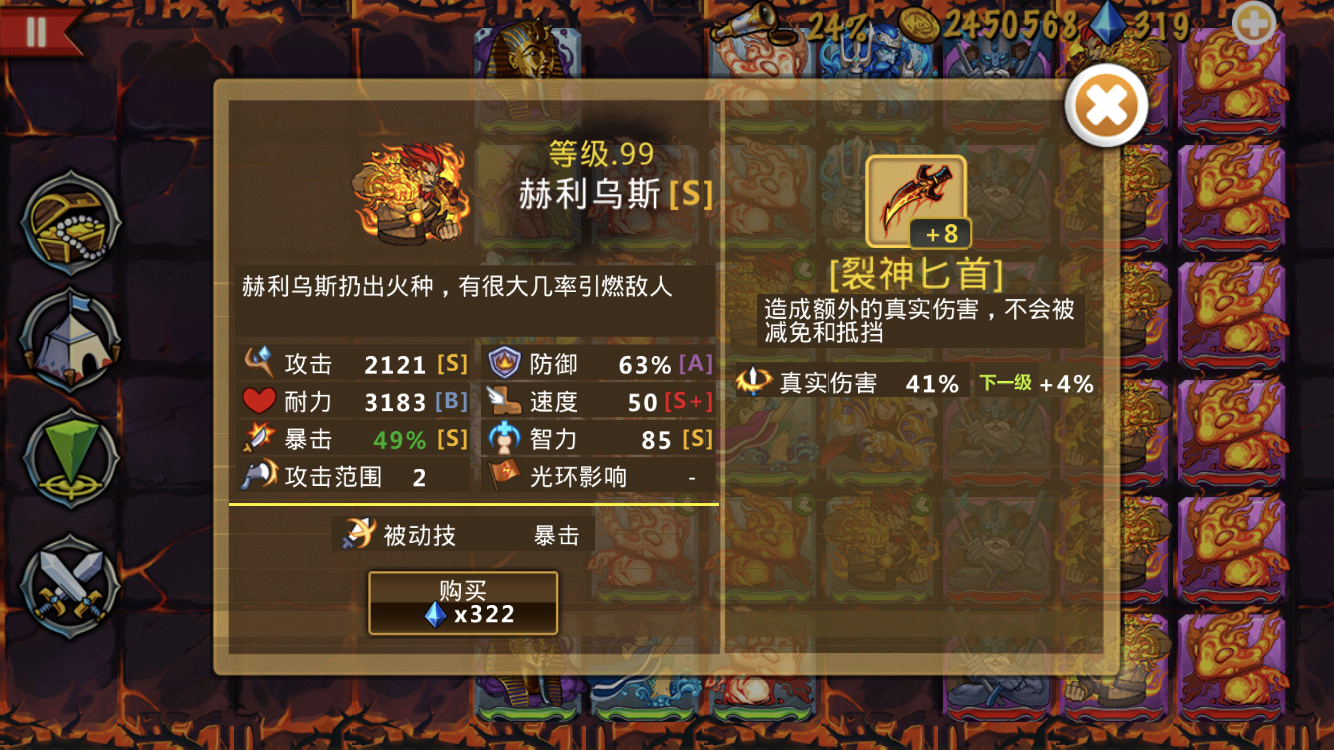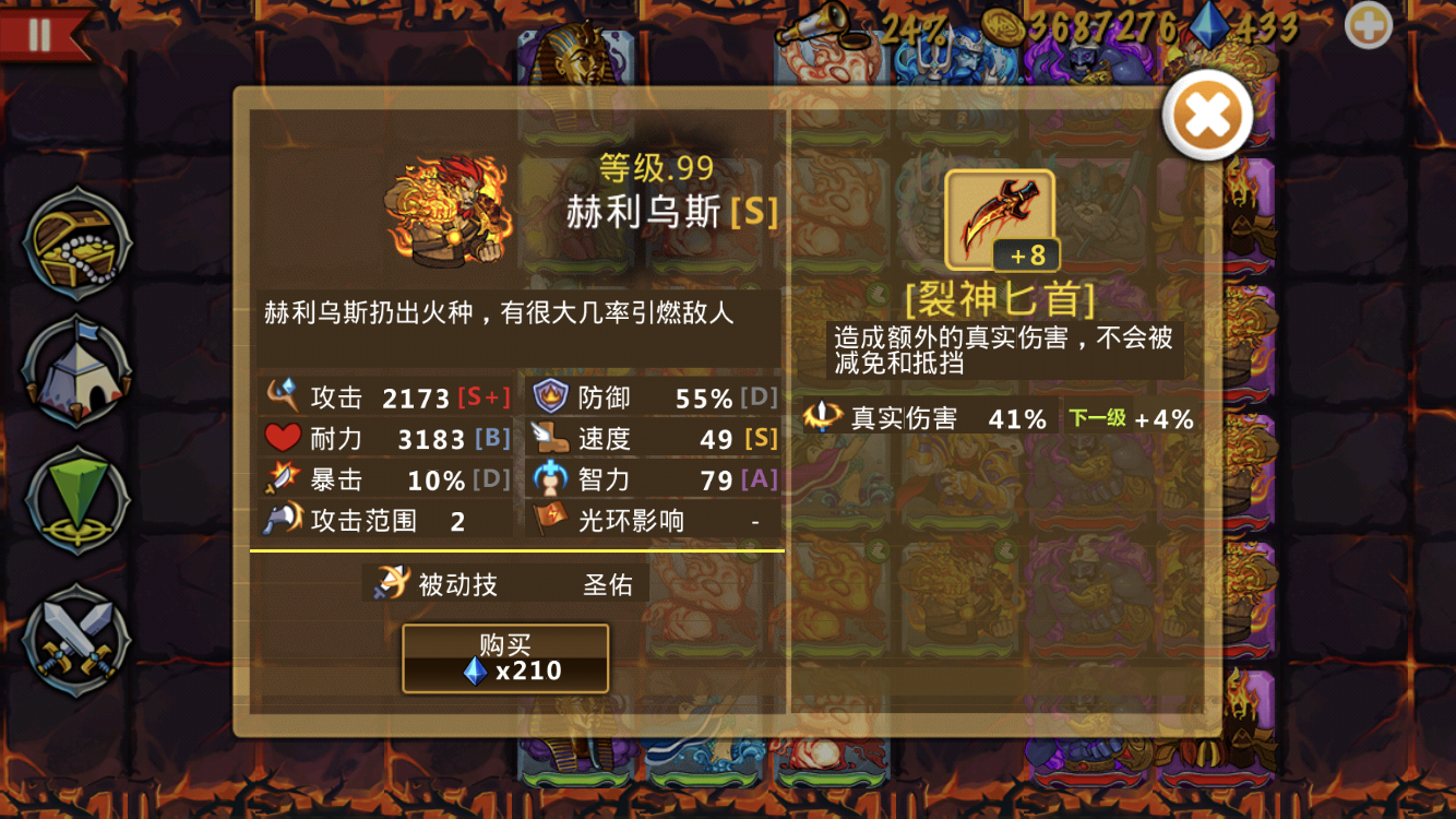 这些英雄很强力,这个阵容也很不错--来自玩家EE4532 现在可6-5了,怎么打,完全站不住么,是不是要准备远攻了,还是绕后哦 法团买了专属,但看见很多说买蓝刀的,究竟是那个好哦 各位大佬,现在2海神二转,1湖仙二转,下一步钻石用来提升什么?我现在主要是打boss站不脚,是优先买英雄还是英雄二转还是买装备,这个火神值不值得培养啊