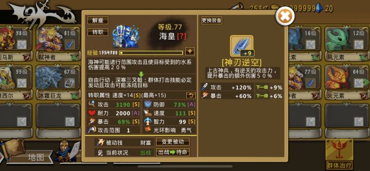 邀请码:EE239。分享两个英雄,海神二转蓝刀加九,厉害超神选手,打6格,直接秒,推图刷钻首选,逆境不行。啊卡留斯,二转蓝刀加九,群攻,杀伤爆表