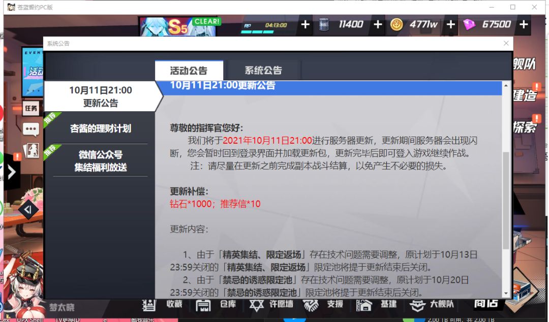 今晚21点更新,提前关闭限定池子。详见游戏内公告 错过了就是一辈子(我相信苍宝能活到复刻的那一天,但现实很残酷)