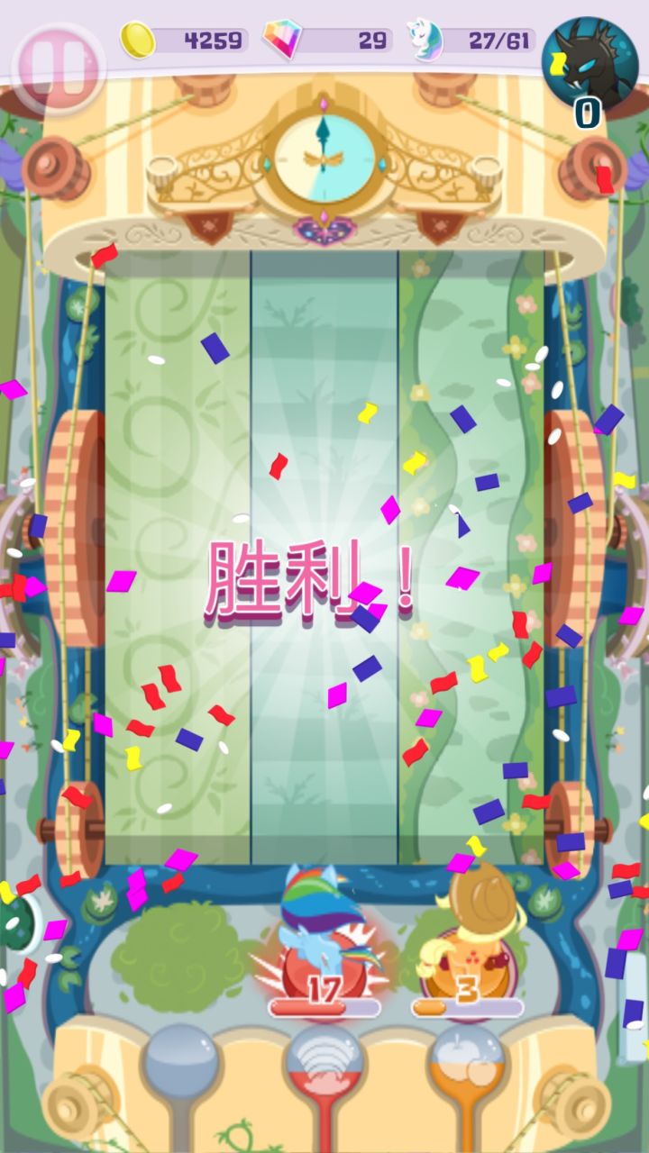 好久没回来了……那就把我不在这会儿发生的事情都说了吧首先呢……老规矩!要用M6打败M6!图书+恶作剧组大法好!PP神驹…………事实上随着游戏进度的增加,关卡对于所需小马的等级自然也就越高,于是……到了PP这里不用三只30级(PP本马20级)是很难一命过的。但是为了信仰,我还是拼了全力,最后那一下其实只是剩下的几个棋子(没错就是那个三面挡)撞没的,不过一下就已经十几血了。但是……打完了PP
