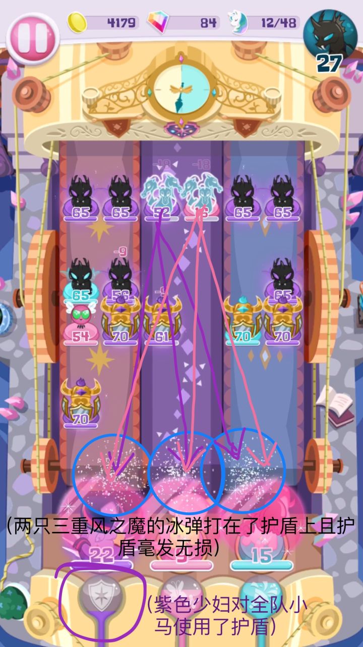 不久以前我在打(不记得哪一关,滑稽)时,突然发现了这一幕:这让我开始好奇这护盾的构造。我去把TS的资料翻出来看了一下:(沙雕修图请不要在意,只注意红字就好😂)我又去玩法里看了一下护盾的作用:但在经过个人反复的试验后我总结出来了这样一条“特性”:风之魔的冰弹会被护盾抵挡,但并不会削减护盾的耐久值。(而像其它的攻击如敌人棋子的直接撞击和帕克奇的攻击则会削减一点耐久值)个人猜想原理可能是这样