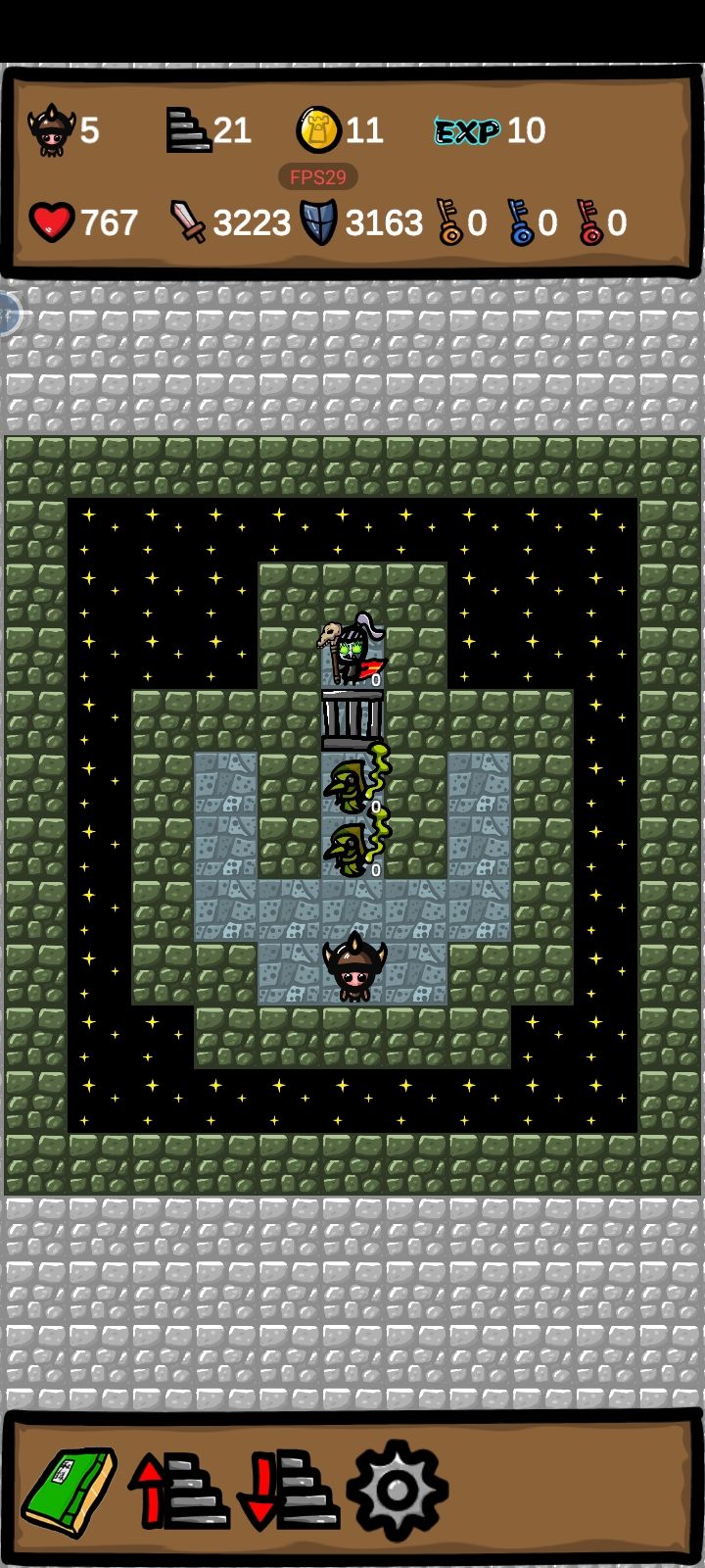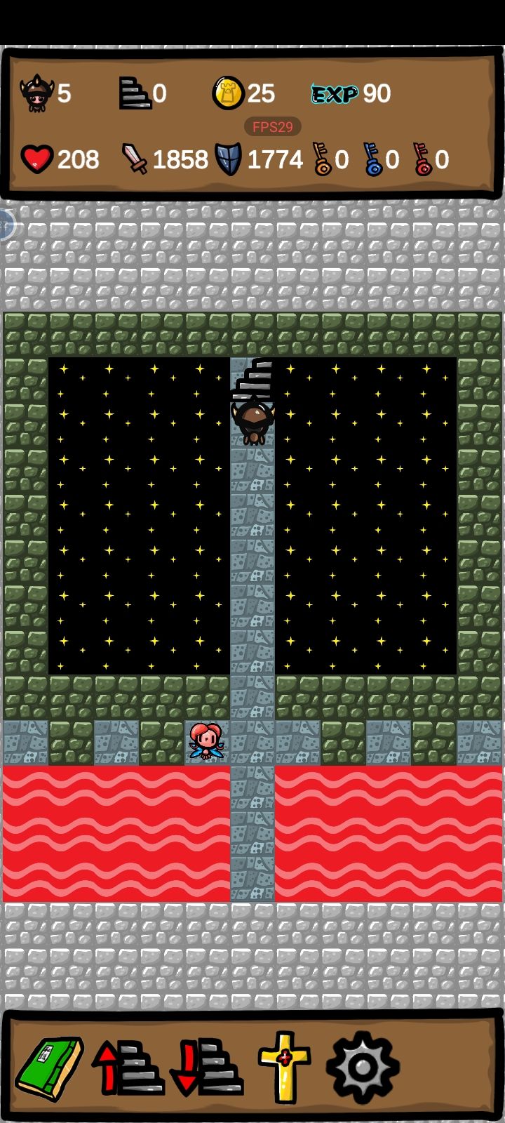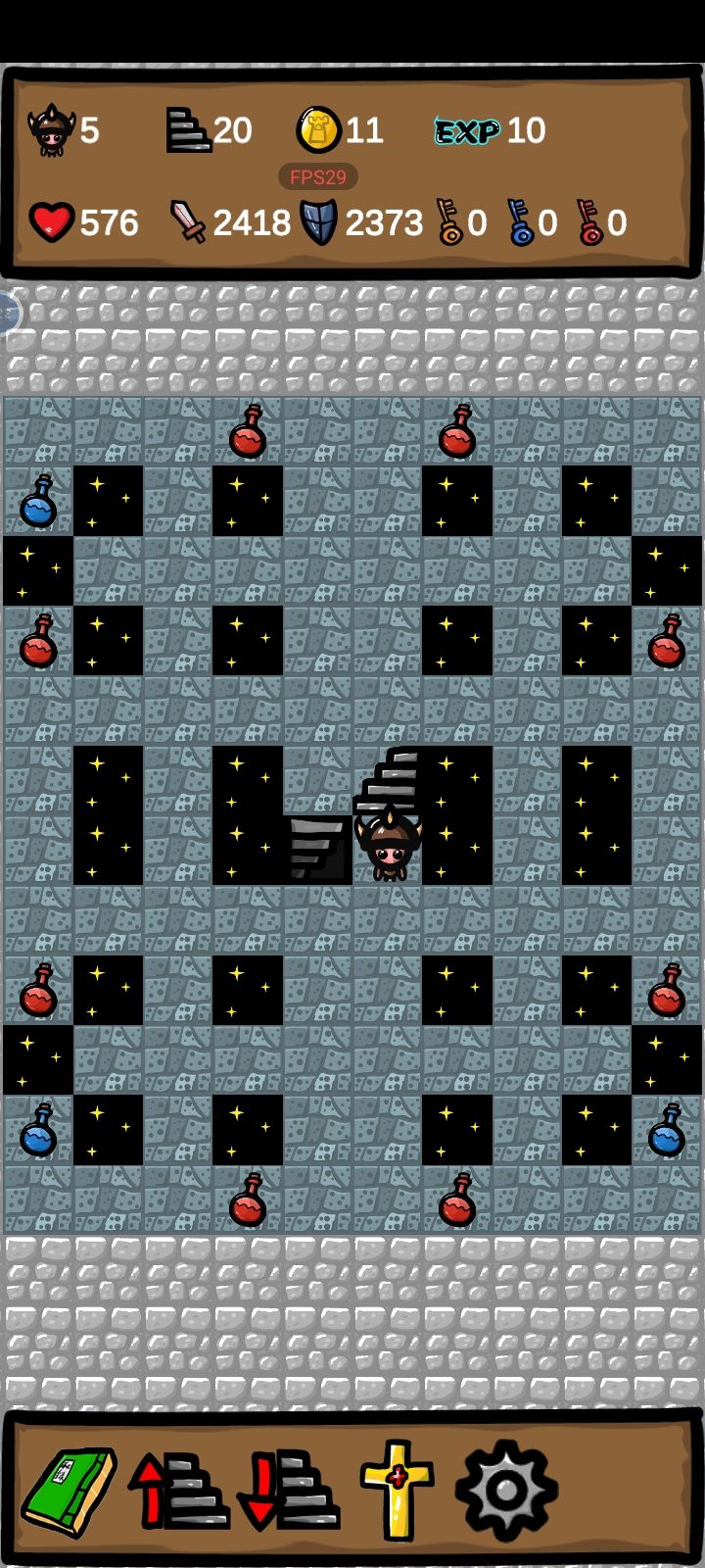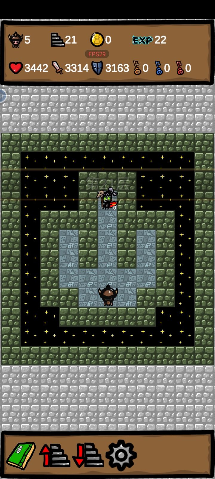 攻略大家都说完了,我就不多赘述。个人觉得需要注意的点。①就是17层不要用十字架,杀一只怪就跳到11楼买属性,满270经验就去13楼升级。②还有就是圣水瓶和不挡路的血瓶留着过17层。③打21层BOSS,使用十字架前,防御属性要达到2160左右,之后全部金币加攻击。使用十字架就能无伤过BOSS。完结,卸载。