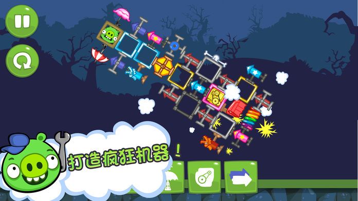 Angry Birds 创作团队推出:出自猪猪视点的一款游戏!哼~哼~!临时把一大堆零件拼凑起来,打造一部交通工具,还要保证交通工具不被炸毁,开到终点!