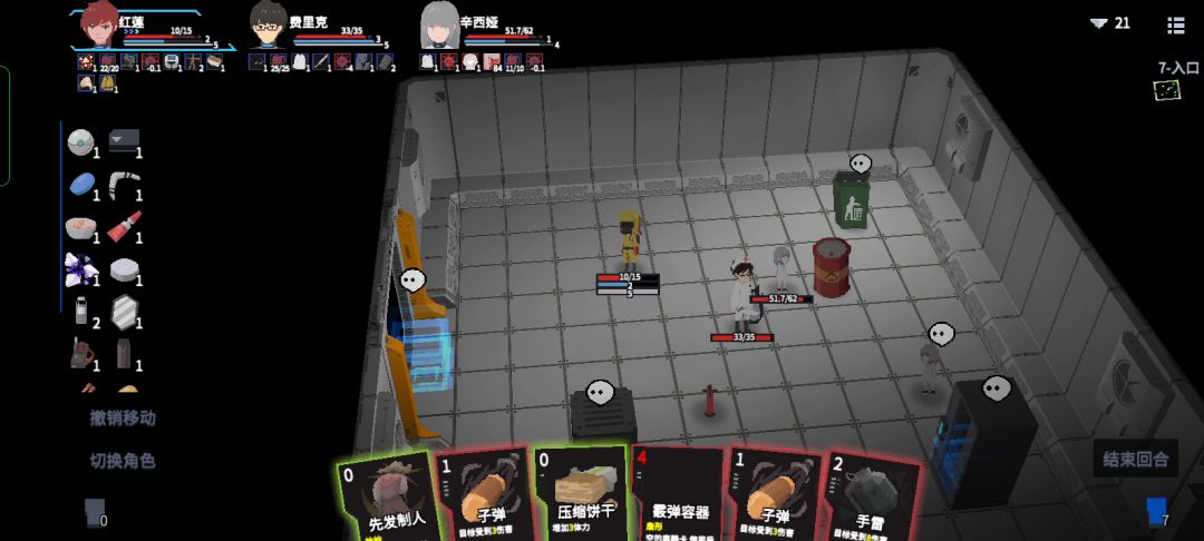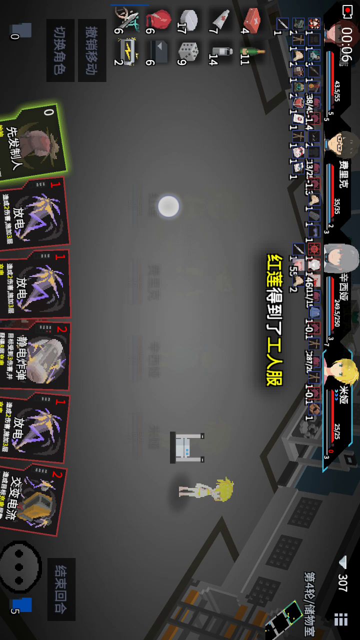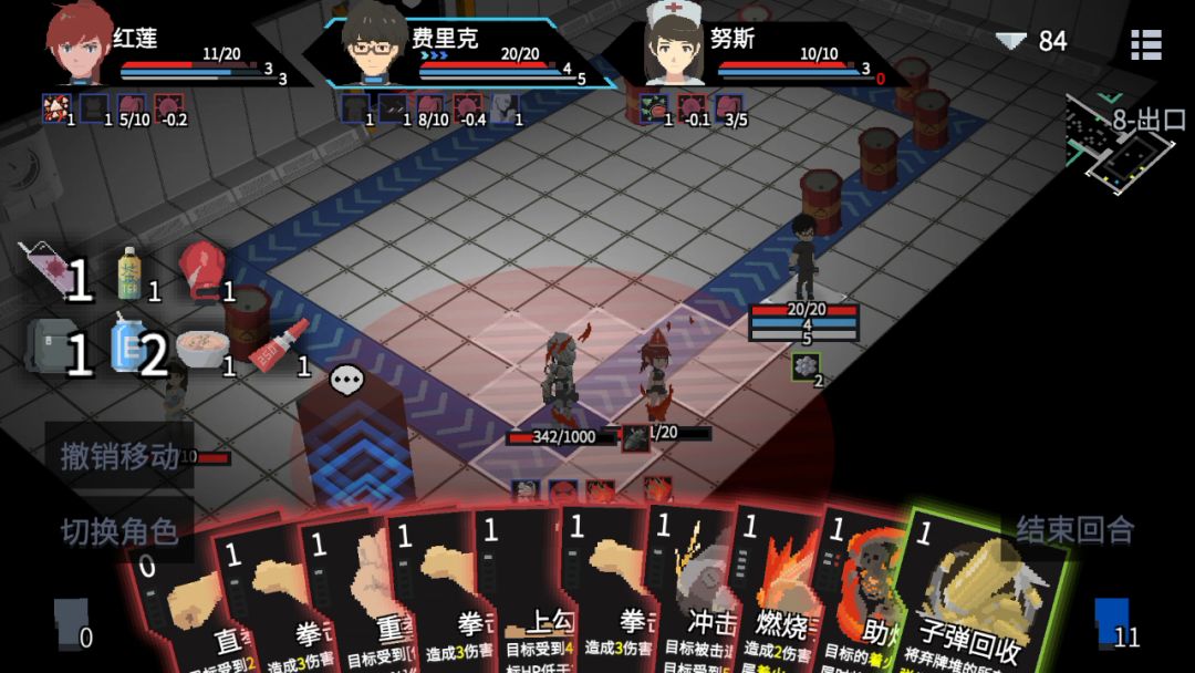 因为手机问题,玩着一卡一卡的,姐姐身上一直泛绿光,耗时有点长。。。。。大家耐心看一下吧。 我说一下我的玩法打法 生命矩阵配合医学入门和医学精通给除了辛西娅之外的角色,这个角色将拥有不会死的能力,除非秒杀。然后配一个能开局就回复能量或者体力的装备或者牌,就会刷很多体力能量。 想简简单单的玩就给姐姐优先叠c20,其次原石枪,八倍镜,枪械大师。刷异化技术必须带弟弟,刷生命矩阵必须带米娅,这就导致玩家不能光看脸打。 前期姐姐拿制作卡牌,主养辛西娅,给辛西娅叠体力,给压缩饼干,代偿装置,输血,羁绊,工人服,(这些东西可不带,重拳,八卦圈容器,直拳容器等拳击容器,这些容器里面只放重拳) 弟弟带汽油桶,前面8层打架靠辛西娅,9层打架弟弟姐姐努斯就想办法堵路,我一般把右边一大块全部堵成一堵墙,然后姐姐慢慢磨血量耗死boss
