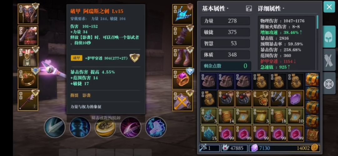 1.千灵释放最后一次斩击时撕裂 可扩大斩击范围 比如打屁股后面的小怪 或向前斩 2.剥皮与割草 ①四难度剥皮建议剥15 坦度够的友友刺客盘 坦度不够的友友们用如下虚无盘(逆时针转两圈俩加移速来跑图)重装坦克用通用天赋 想要加点暴击率提一提穿甲跑图再快就用斧子天赋 ②低难度割草 斧子天赋加跑图速度 盘子用气刃+加速 如下图(逆时针一圈) 气刃割草真的巨爽无比 可惜我是个贫民 只能割难度