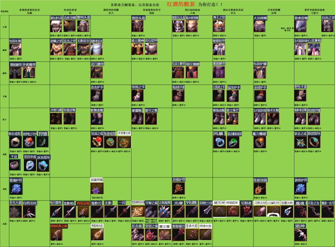 魔渊之刃 各职业天赋装备,以及装备出处