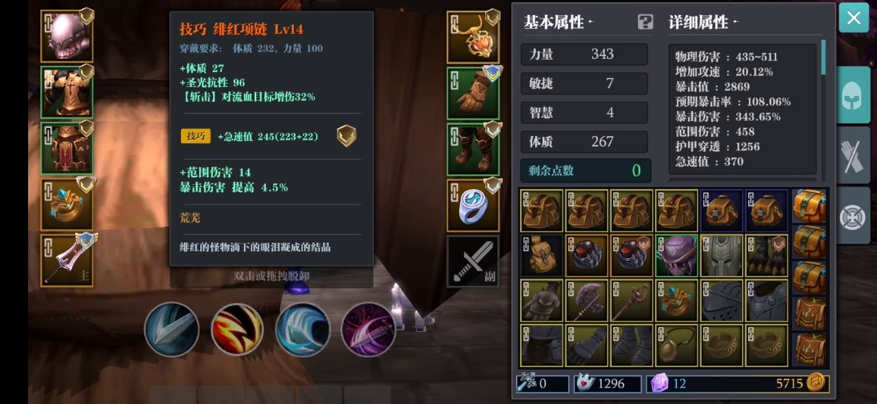 如果没有足够的体质狗粮,衣服选择角斗场还是荣耀衣服,乌桑和华戒全部是力量的。角斗场效果感觉没有实装一样。