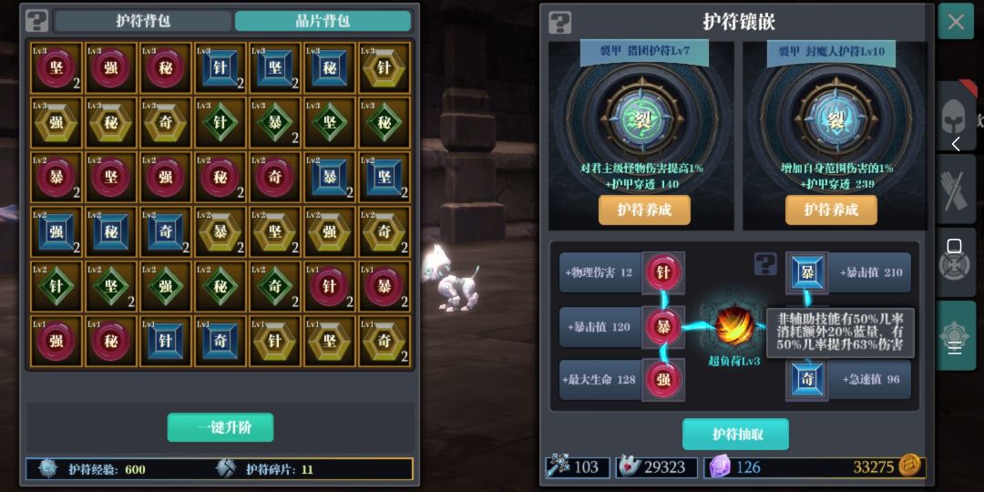 供选护符特效: 超负荷 魔战士 残血狂暴 防误差准备: 天赋:残暴天赋 桩头:噩梦一鸡儿 装备:常规翼飞百折 测试方法:固定释放10次旋风斩 取总物理伤害 3级超负荷 3级魔战士 3级残血狂暴 4次总伤害量: 超负荷:806+832+827+797=3262 魔战士:794+791+797+790=3172 残 血:893+870+872+890=3525 总结: 残血狂暴>>超负荷>魔战士 观点