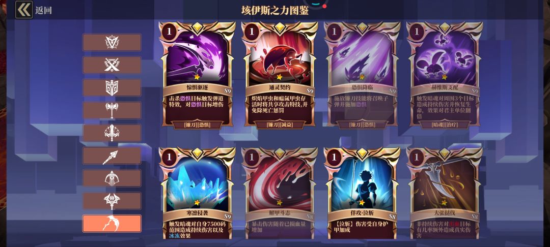 其实各种武器,有各种武器的玩法,没有觉对辣垃圾的职业,看你如何开发这个玩法。 介绍一下镰刀流血恐惧玩法 如图解, 卡不齐,因为不是主玩镰刀,正确的应该是把泣斩卡换成重伤, 为什么换掉泣斩,首先,这个赛季玩的是元素流,怪的攻击也是元素攻击,所以叠加的护甲不能加成多少防御,虽然加成攻击,但是不足,而且我们玩的是元素攻击,所以,换上重伤。 第二,支配换掉,换上克敌制胜 支配这个卡,其实用处真心不大,伤害