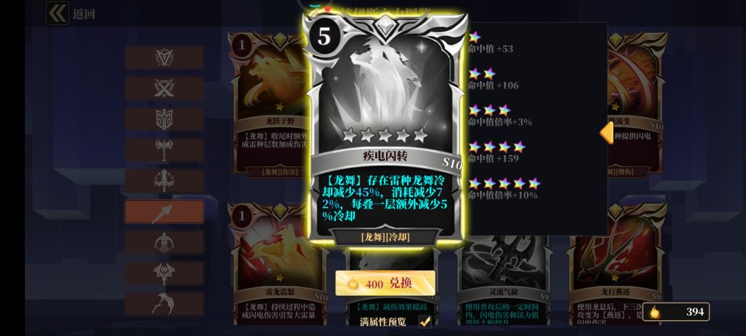 个人见解龙舞跟剑盾的开车很像但是又不是那么想,在体验过之后,以下是我自己的一点思路雷种是龙舞技能开启的时候的被动,可以提供冷却和CD减伤等等,但是因为龙舞不是施加感电所以,还需要s9得燕返和神王联动,以下是需要的卡 雷种的被动可以给神王提供高额的闪电伤害加成,所以还有一张紫卡需要去赌就是雷种时间延续的卡 以上是个人见解,希望各位大佬嘴下留情