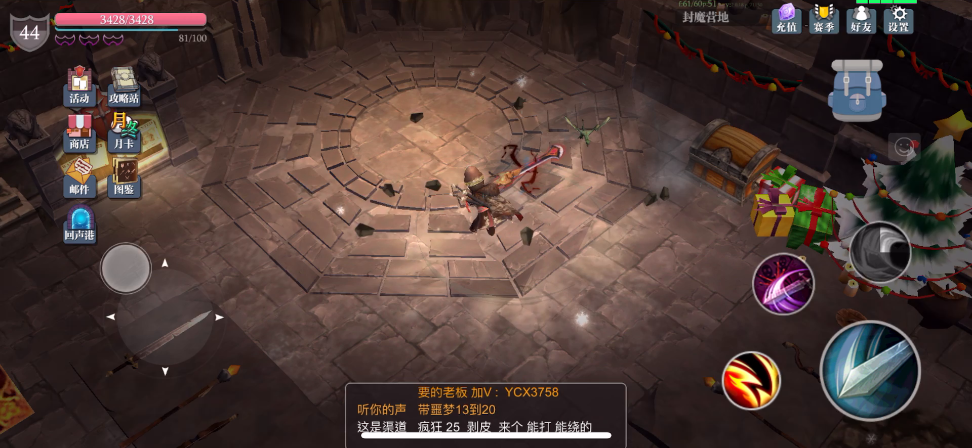 魔渊大擂台3总得来说不难,主要被秒,或者出圈。 天赋--建议皇冠👑比较好用 法盘--刺客--暴击不足100%建议右上角凑出来暴击潜力。100%暴击率就不用管了。 连协------残血狂暴 搭配----皇冠👑+残血狂暴+暴击潜力 可以完美契合压血线 打法视频展示 第一关 -----------3只巨兽跳+撞击----------- 核心就是跑圈+控制状态 重点1---我们的搭配最好吃一下跳跃,可以掉