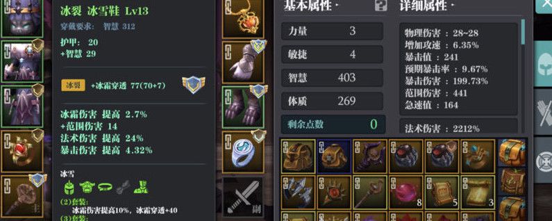在游戏当中,魔渊之刃冰法最强的天赋是魔盘,初始魔盘可以下洞旋转2下,探险家+魔力穿透,如果遇到哥布林,转一下变成小红帽,白嫖哥布林箱子。装备可以搭配武器极寒冰封,然后我穿的冰霜头、冰霜胸、冰霜腰+多重、冰捷手,博学者项链+冰锥回旋戒指+贪婪者戒指,如果没有博学者可以换成极寒或者典伊都可以。 操作的方法是赌,建个小号,然后通普通就行了。每天买6级暗金饰品+8级暗金防具。自己号每天买11级饰品+12级